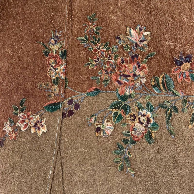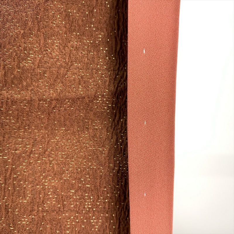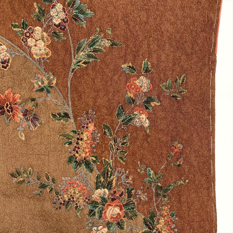 【色柄】茶 金彩 金通し 縮緬 道長取り 草花