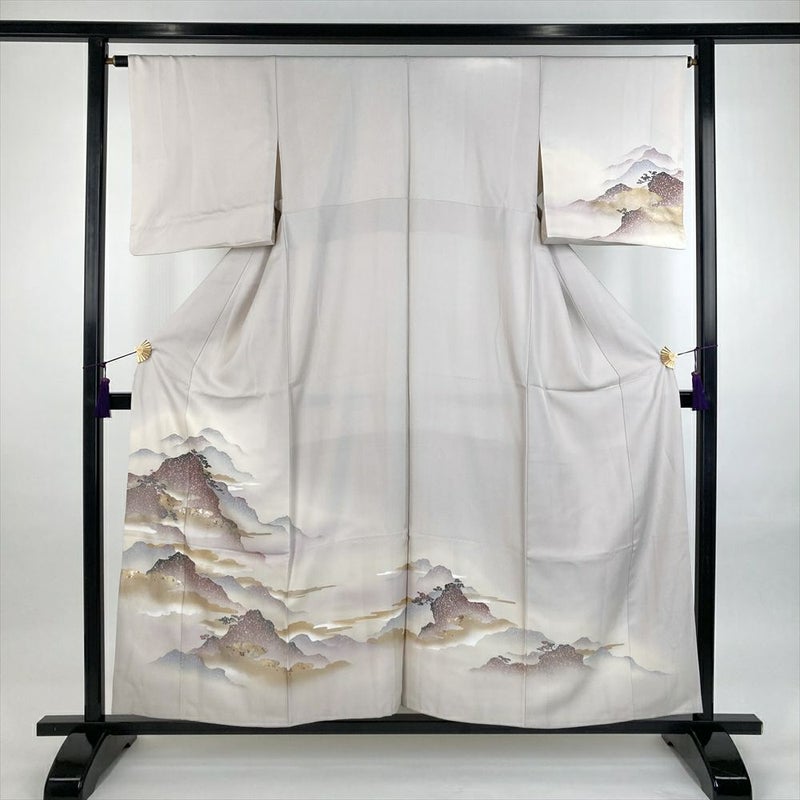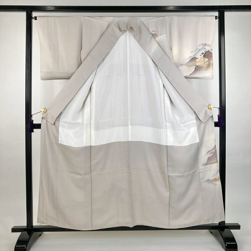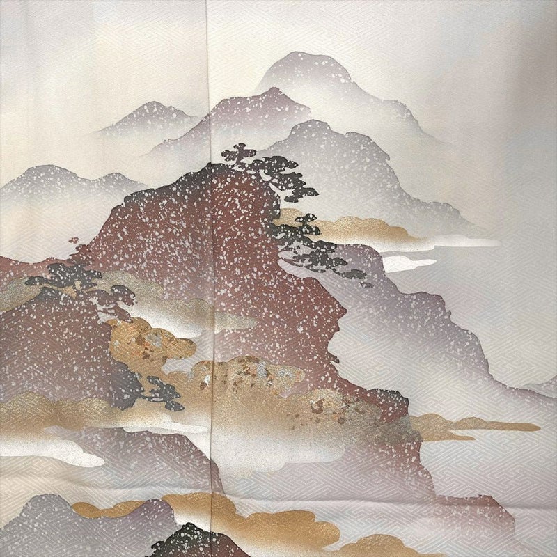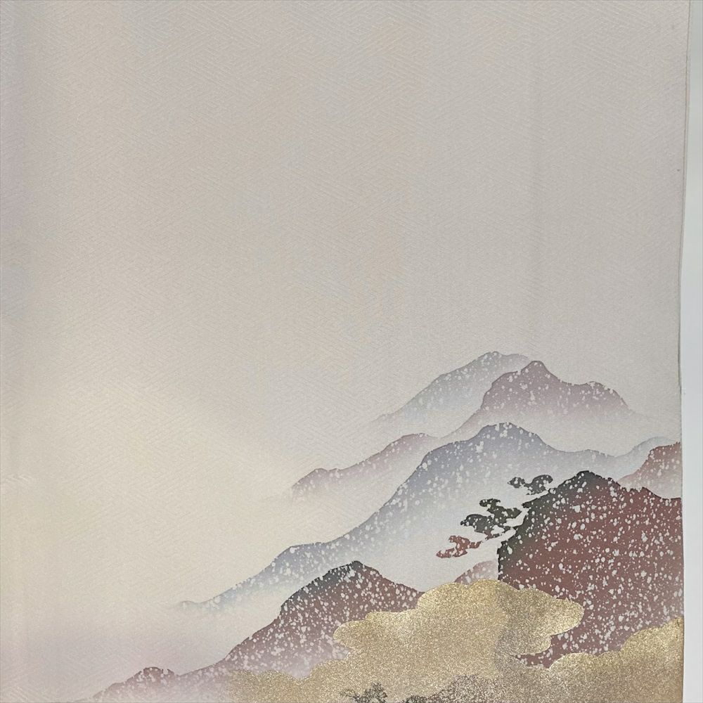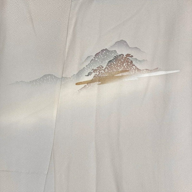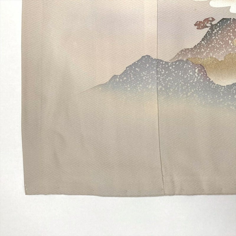 【色柄】薄灰 セミフォーマル 地紋織り 染め 金彩 雲 山並み