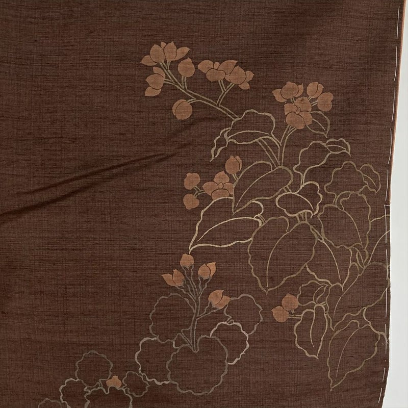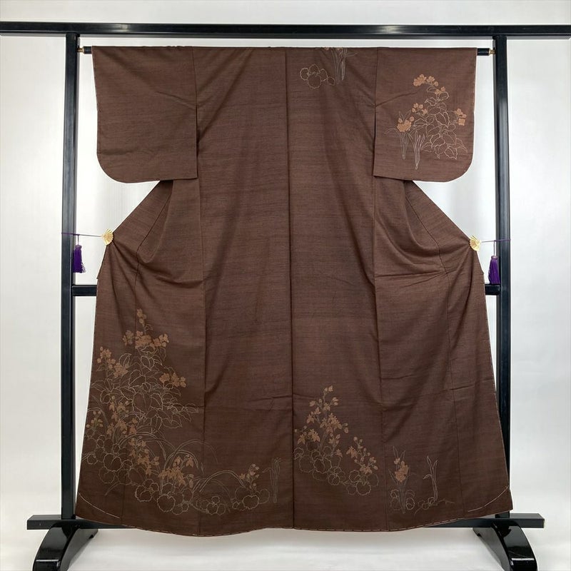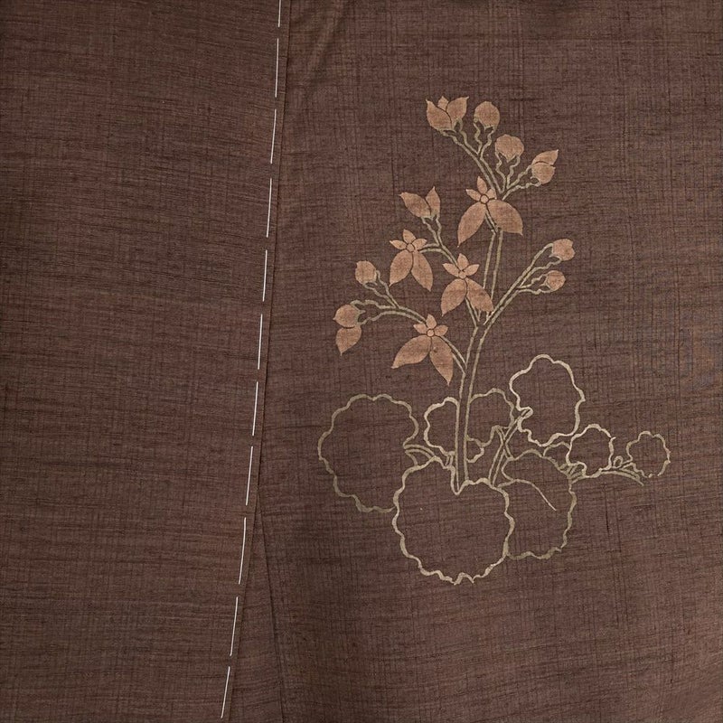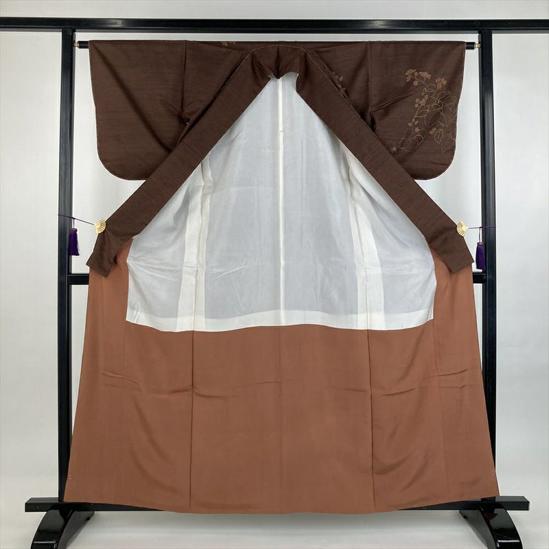 (中古)訪問着 茶 セミフォーマル 紬地 染め 四季の草花 袷 S【身丈】157.5cm【裄丈】63cm