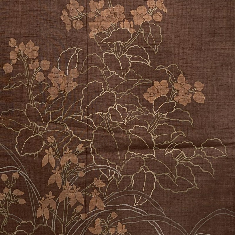 【色柄】茶 セミフォーマル 紬地 染め 四季の草花