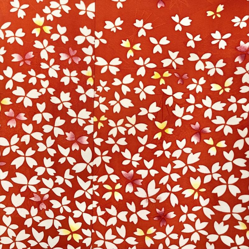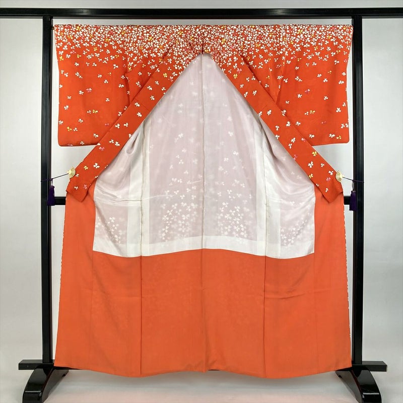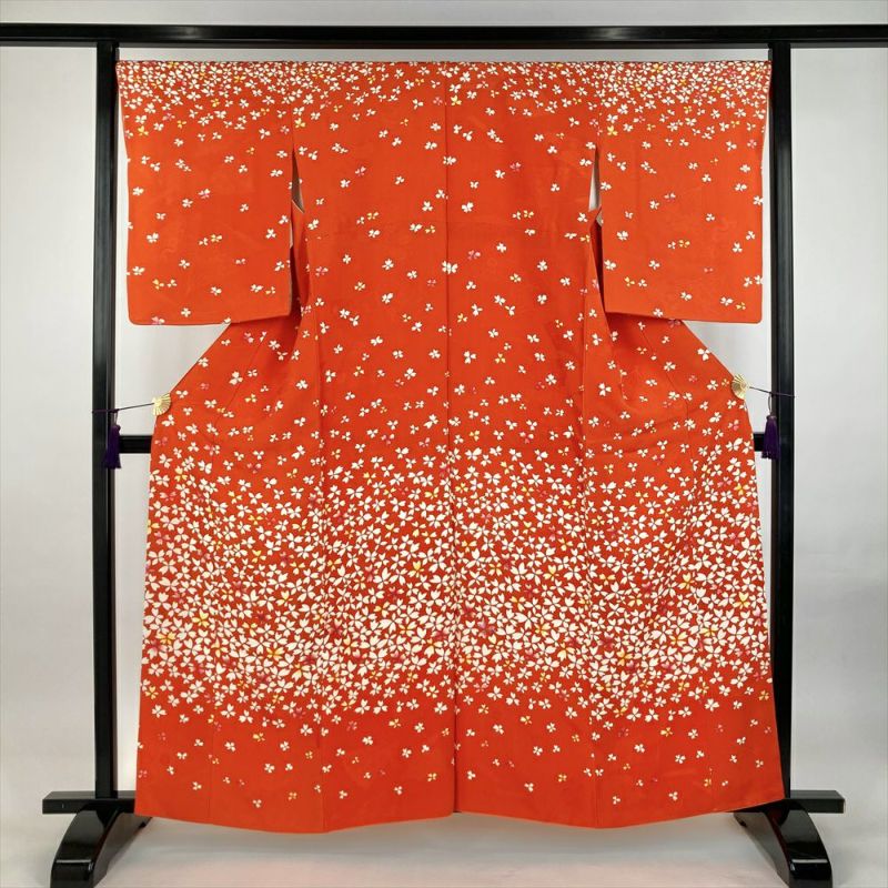 【色柄】橙赤 朱色 オレンジ セミフォーマル 地紋織り 染め 桜尽くし