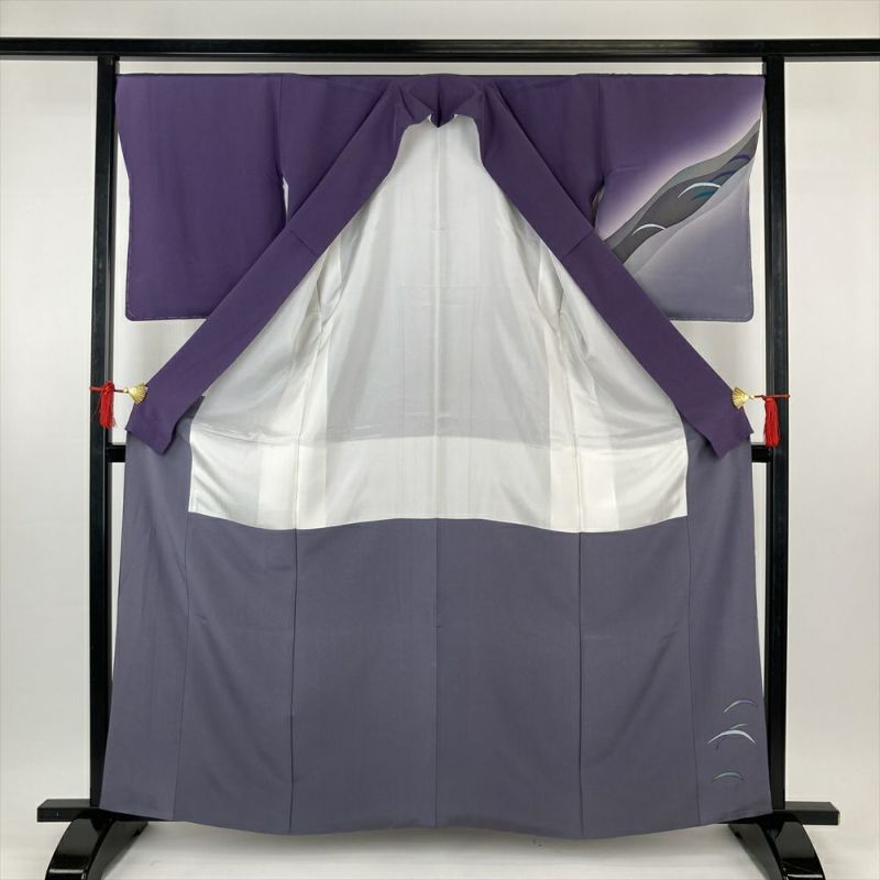 (中古)訪問着 紫 フォーマル セミフォーマル ちりめん ぼかし染め 斜め霞 露芝 袷 S【身丈】157.5cm 【裄丈】67cm