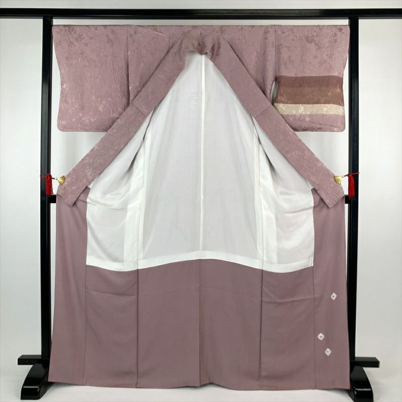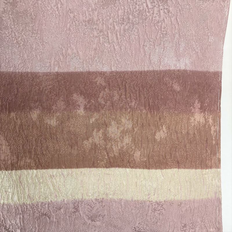 落ち着いた薄紫色に優美な横段染め分けが施された、正絹 ふくれ織りの訪問着。ふくれ織り特有のふんわりとした風合いが、着物姿に上品な華やぎを添え、大人の女性を優雅に包み込みます。