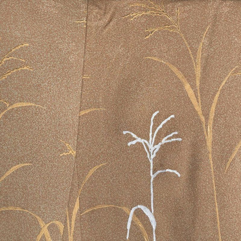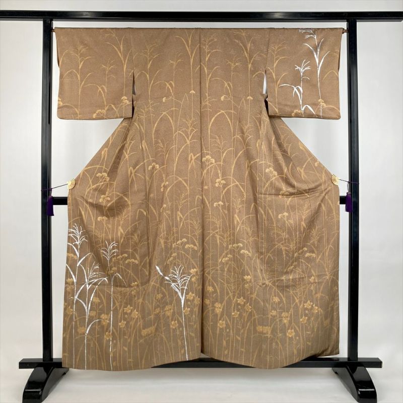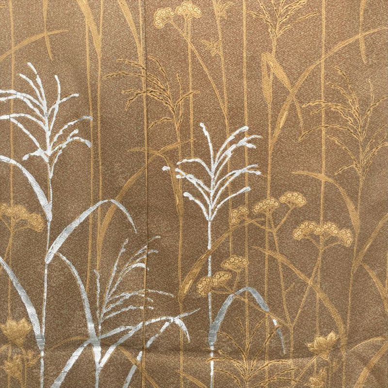 【色柄】柳茶 茶 セミフォーマル 地紋織り 染め 銀彩 四季の草花