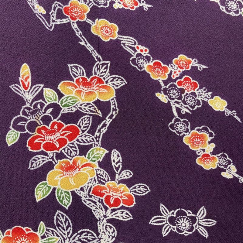 【色柄】紫 フォーマル セミフォーマル ちりめん 型絵染め 椿 梅 鶴