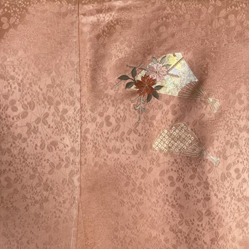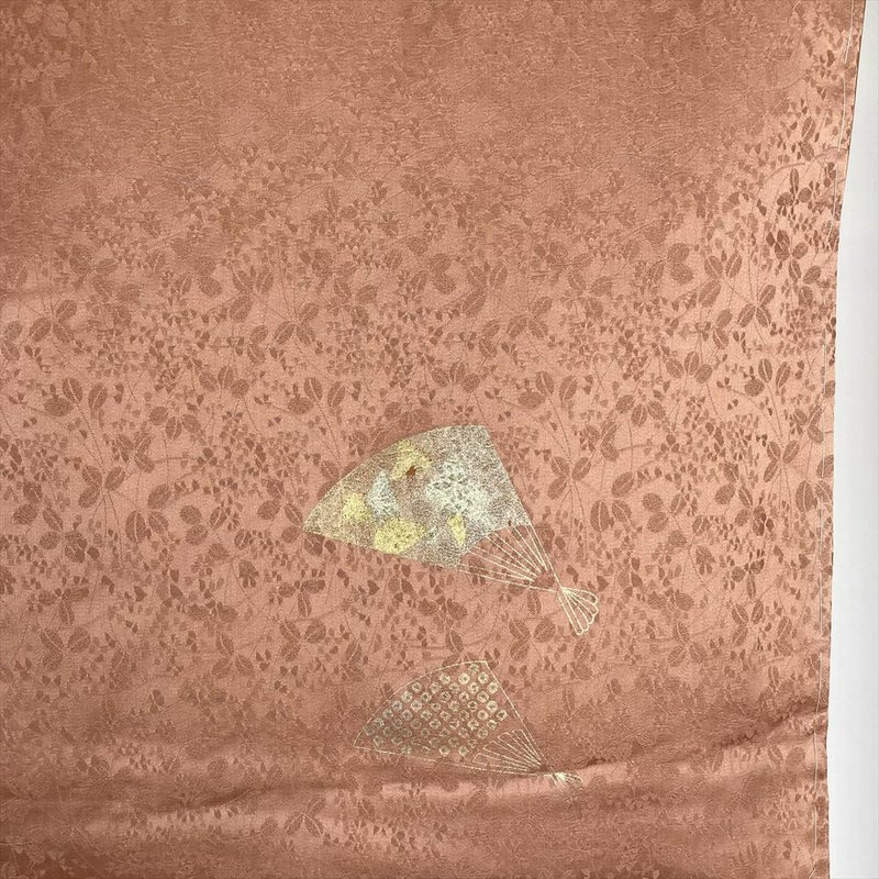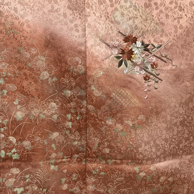 【色柄】コーラルピンク フォーマル セミフォーマル地紋織り 金彩 刺繍 扇 花