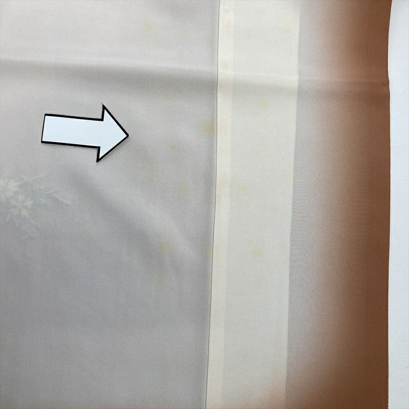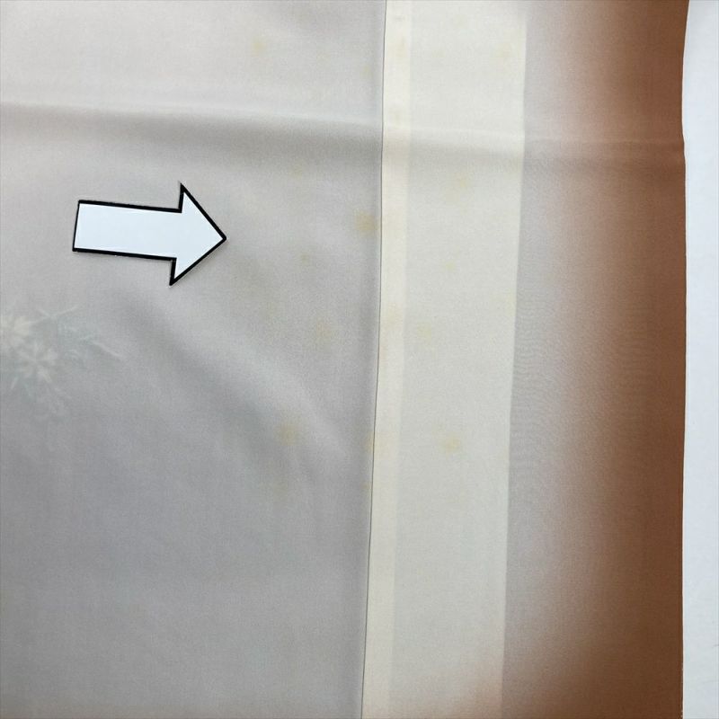 まるで陽光を閉じ込めたような、優しい薄橙色。今回ご紹介するのは、地紋織りが施された、上品な訪問着です。光の加減で浮かび上がる地紋が、静かながらも確かな存在感を放ち、着る人を優雅に包み込みます。
