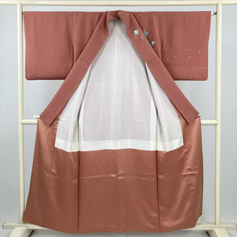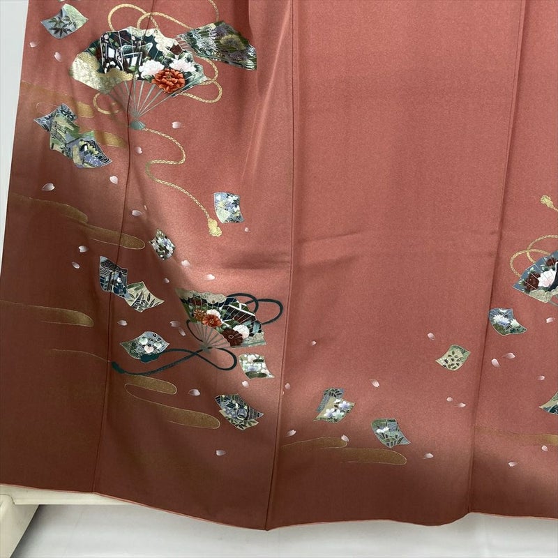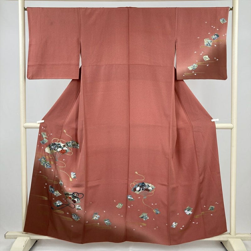 (中古) 訪問着 紅梅 ピンク セミフォーマル 扇文 色紙文 袷 絹【身丈】152cm【裄丈】66cm