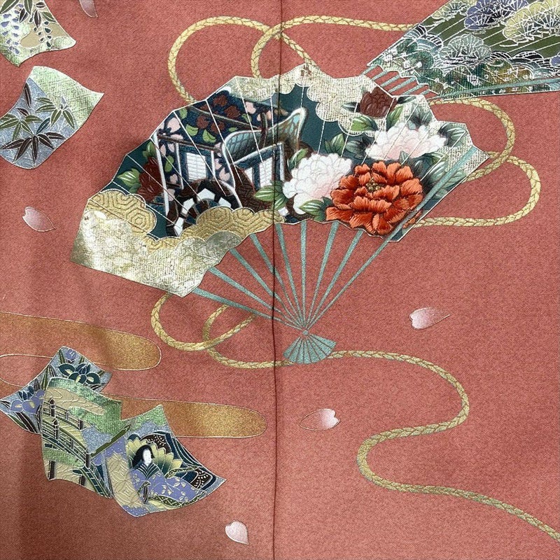 【色柄】紅梅 ピンク セミフォーマル 扇文 色紙文