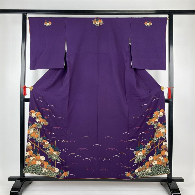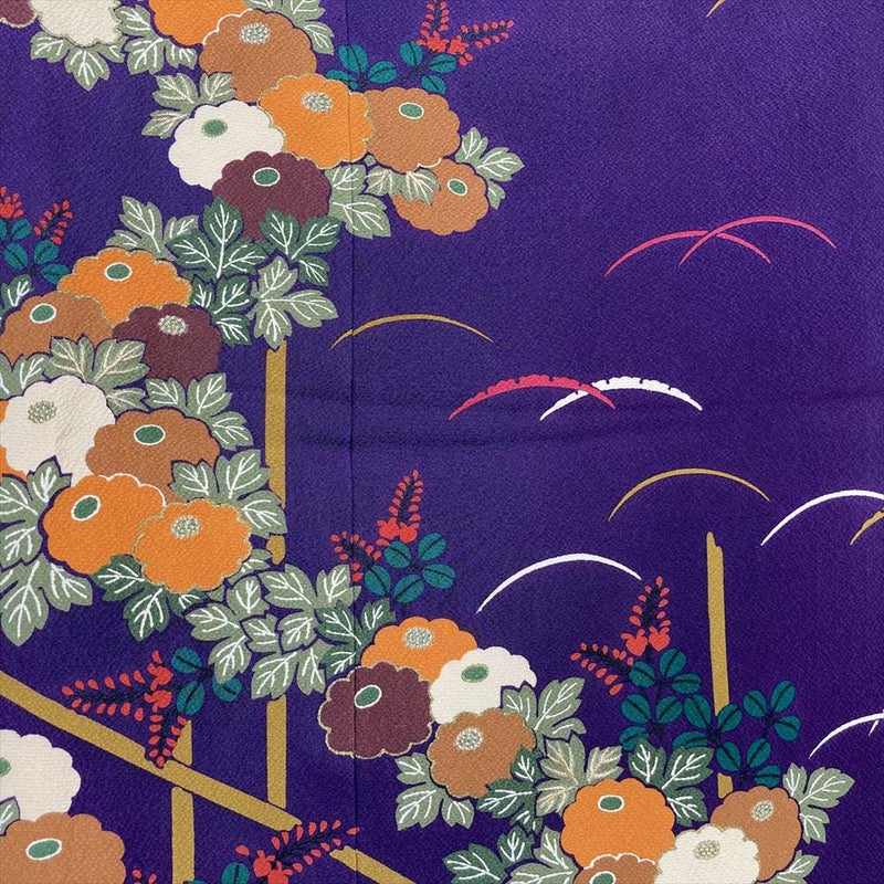 【色柄】紫 セミフォーマル ちりめん 菊 露芝