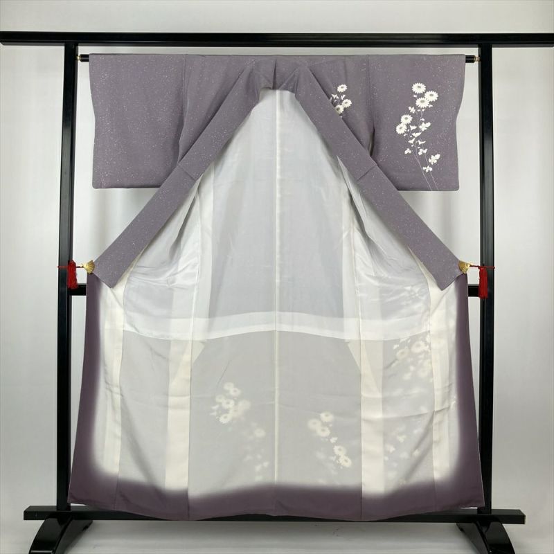 (中古)訪問着 紫 セミフォーマル ちりめん 菊 袷 S【身丈】156.5cm【裄丈】63.5cm