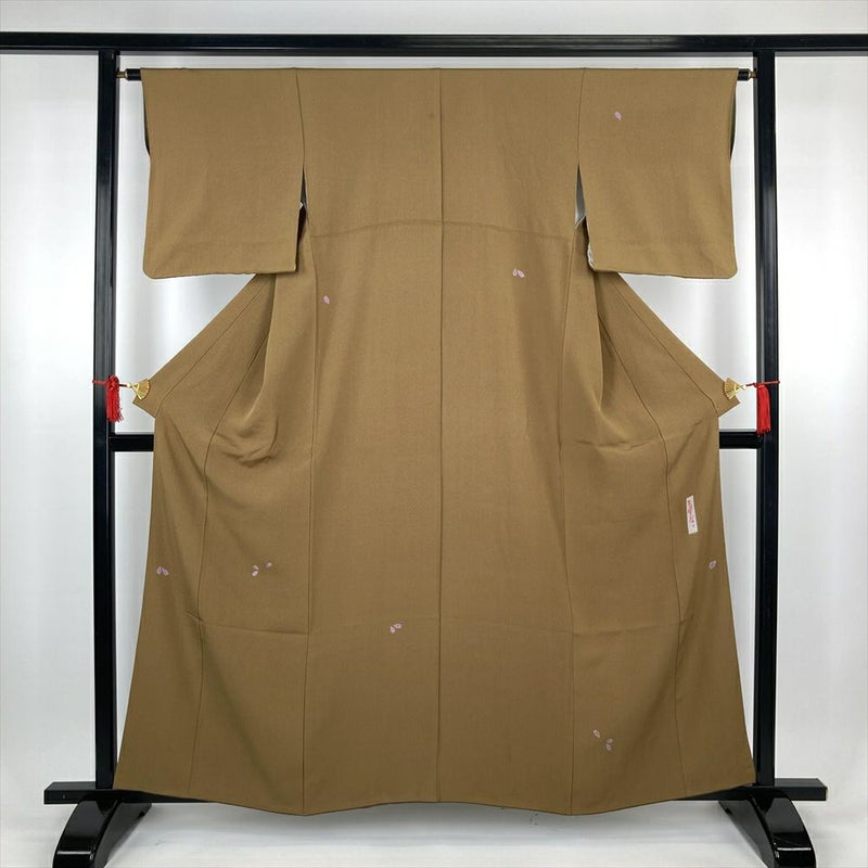 (中古)訪問着 金 セミフォーマル カジュアル ちりめん 花びら 袷 S【身丈】156.5cm【裄丈】63.5cm