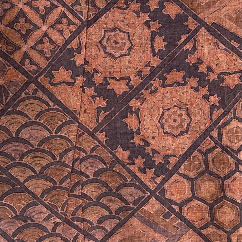 【色柄】多色使い カジュアル 紬地 華文 七宝 亀甲 菱 紗綾型