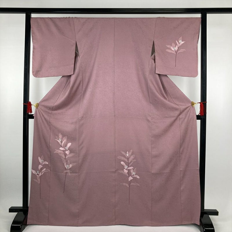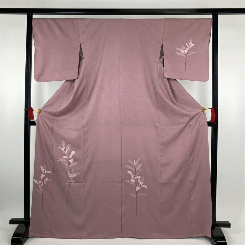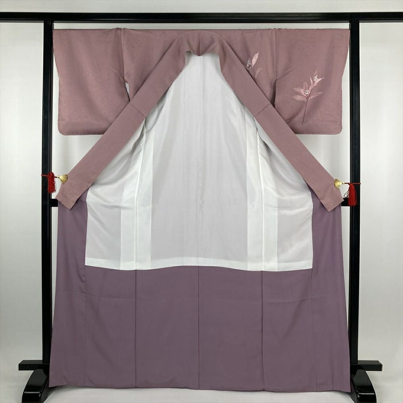 (中古)訪問着 紫 セミフォーマル カジュアル 地紋織り 植物 袷 L【身丈】166.5cm【裄丈】69.5cm