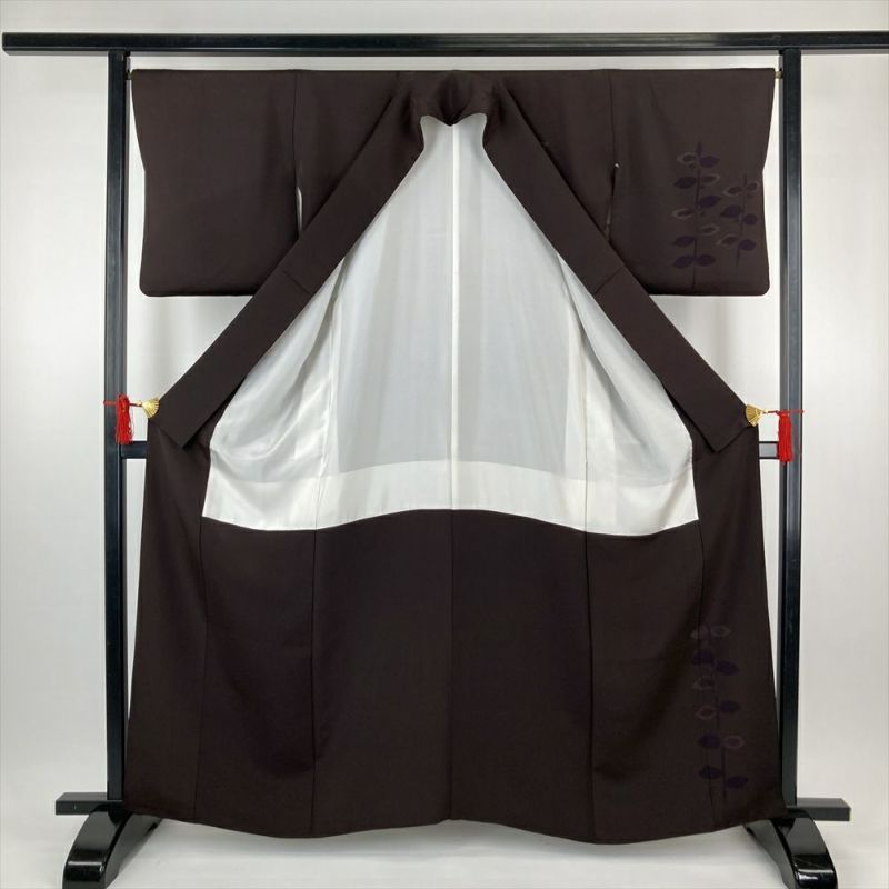 (中古)訪問着 焦げ茶 フォーマル セミフォーマル 刺繍 植物 袷 S【身丈】157.5cm【裄丈】67.5cm