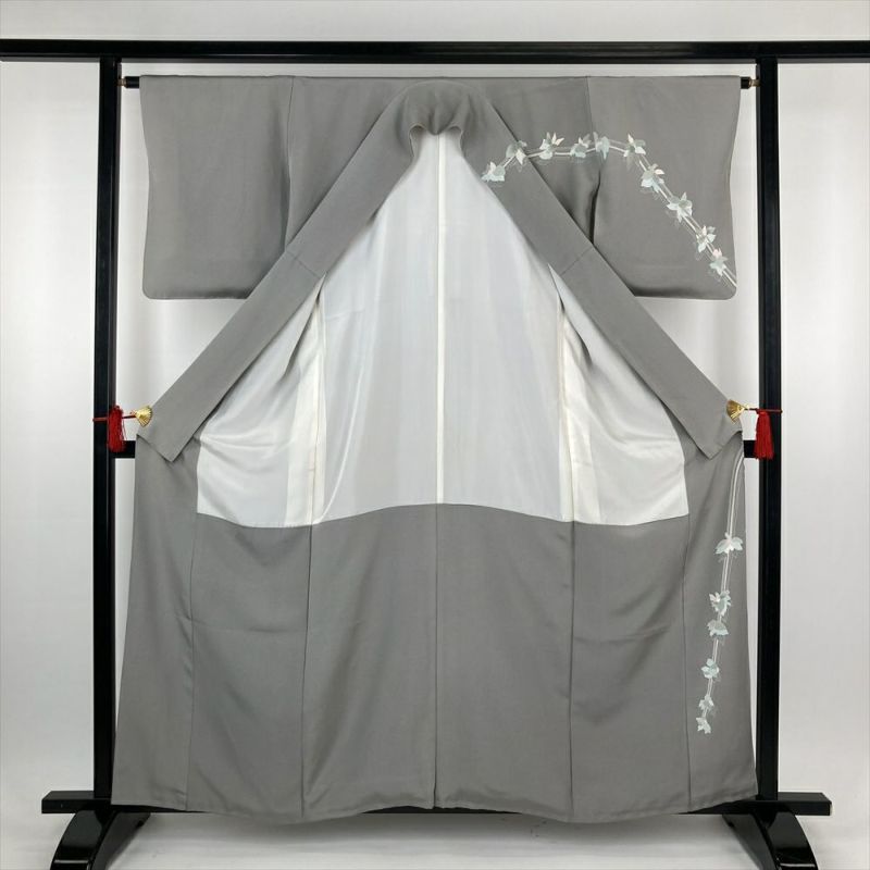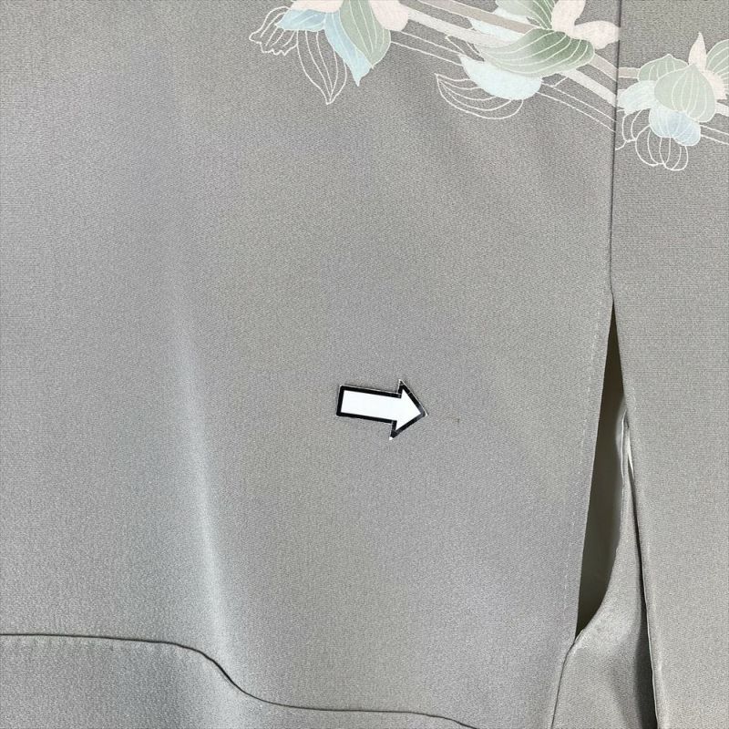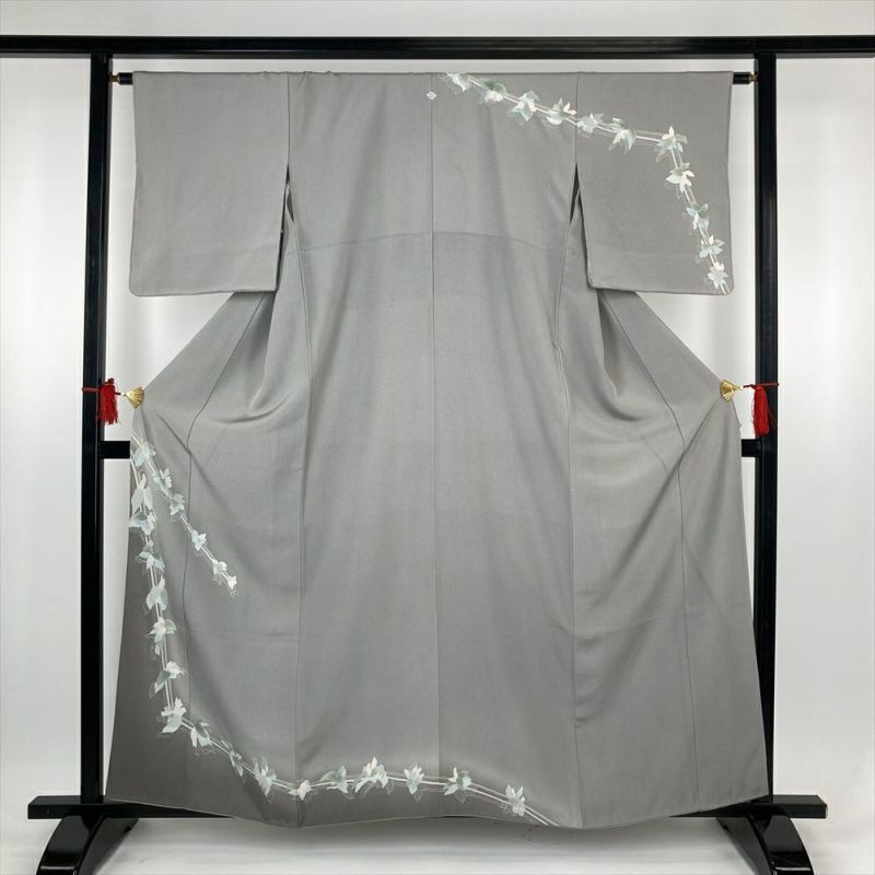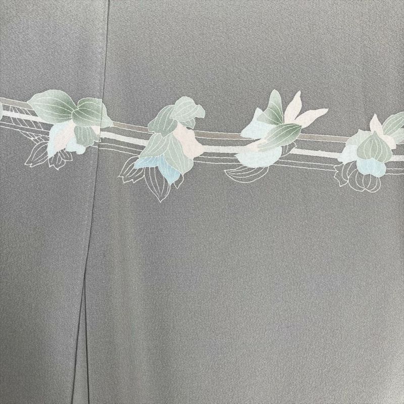 (中古)訪問着 グレー フォーマル セミフォーマル 一つ紋 ちりめん ぼかし染め 植物 袷 S【身丈】155.5cm【裄丈】64.5cm