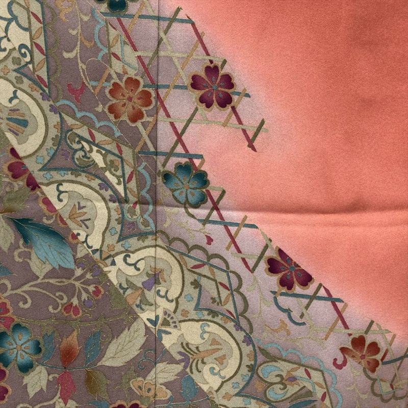 【色柄】サーモンピンク フォーマル セミフォーマル ぼかし染め 金彩 植物