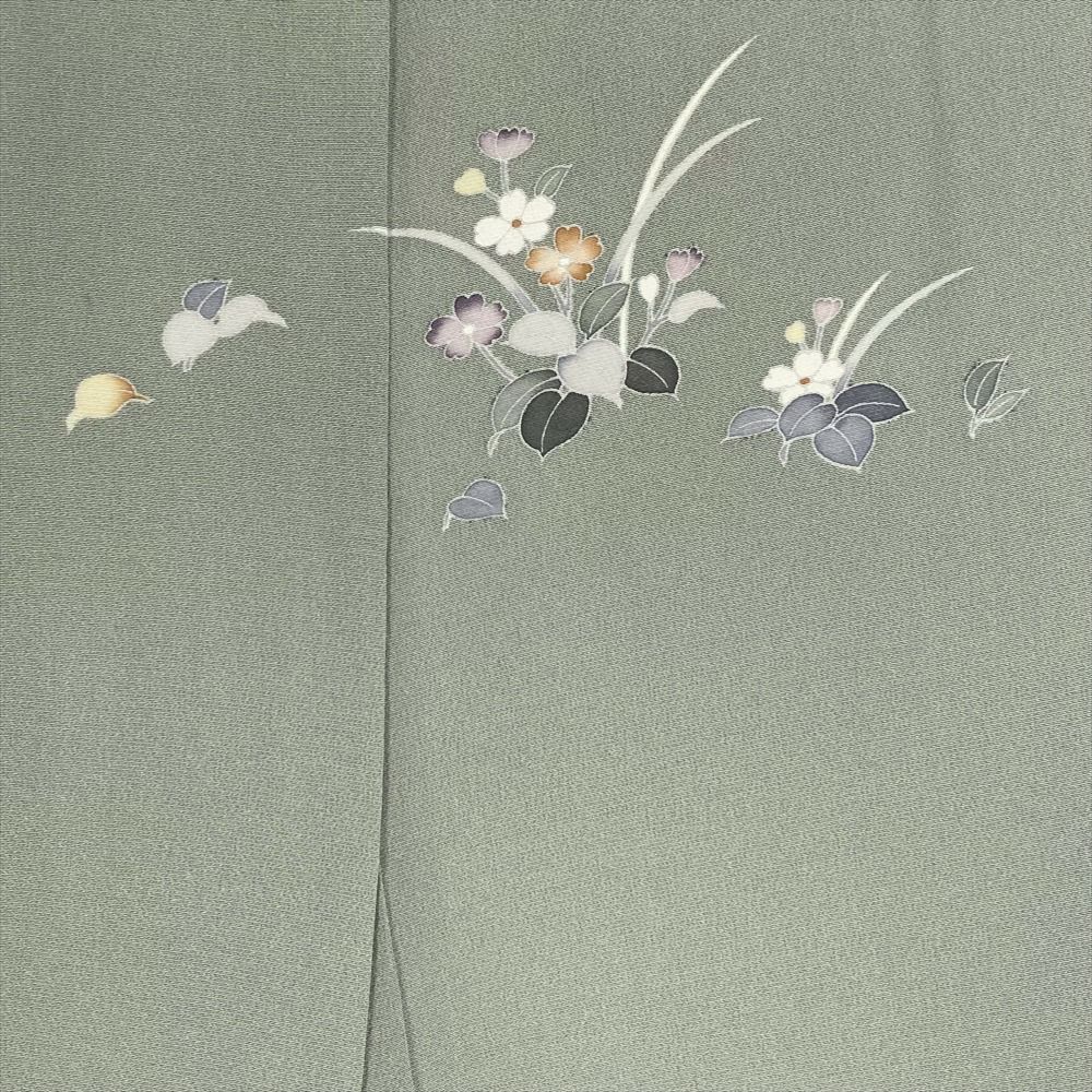 【色柄】薄緑 セミフォーマル ちりめん ぼかし染め 童うた 四季花 落款