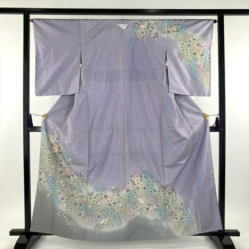 (中古) 訪問着 藤紫色 薄紫色 セミフォーマル カジュアル 織り 大島紬 染め 絞り 辻が花 袷 S【身丈】158.5cm【裄丈】65cm
