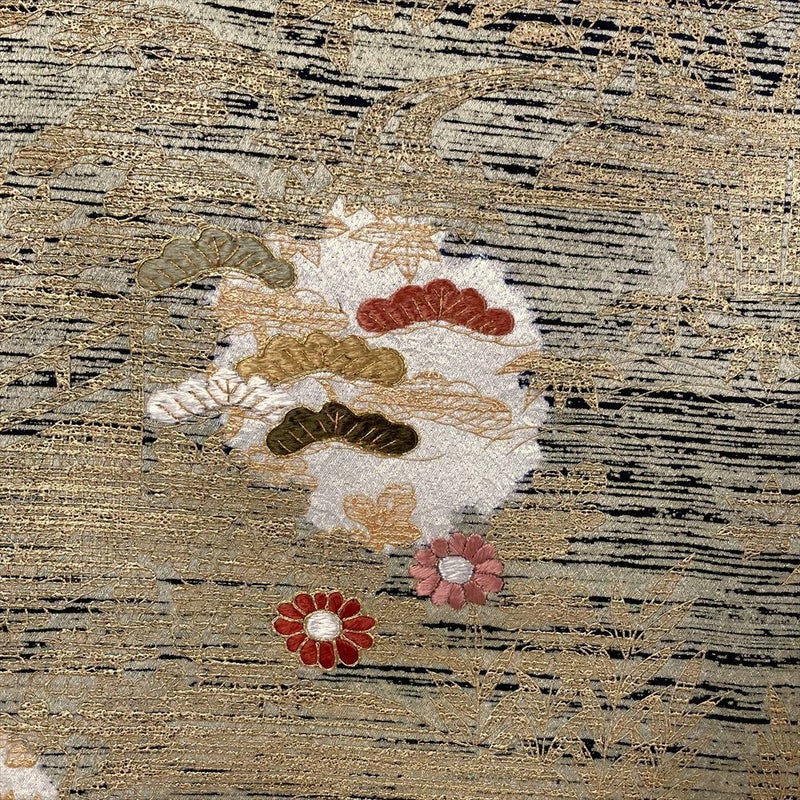 刺繍:上前には刺繍が施されています。絹糸特有の美しい光沢があります。この光沢が、刺繍の模様をより一層際立たせます。