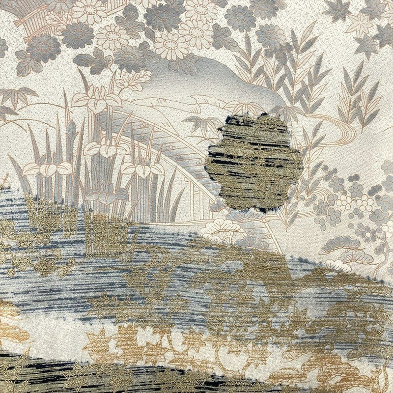 「御所解文様」「江戸解文様」「茶屋辻」は、流水や家屋、草花などを取り合わせて風景のように構成し、あたかも一幅の絵を見るような贅沢さを感じることが出来る文様のひとつです。