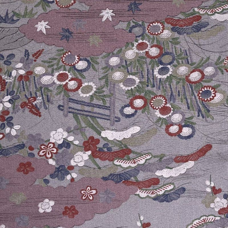 【色柄】灰紫 ヴィンテージ 雲取り 水辺文