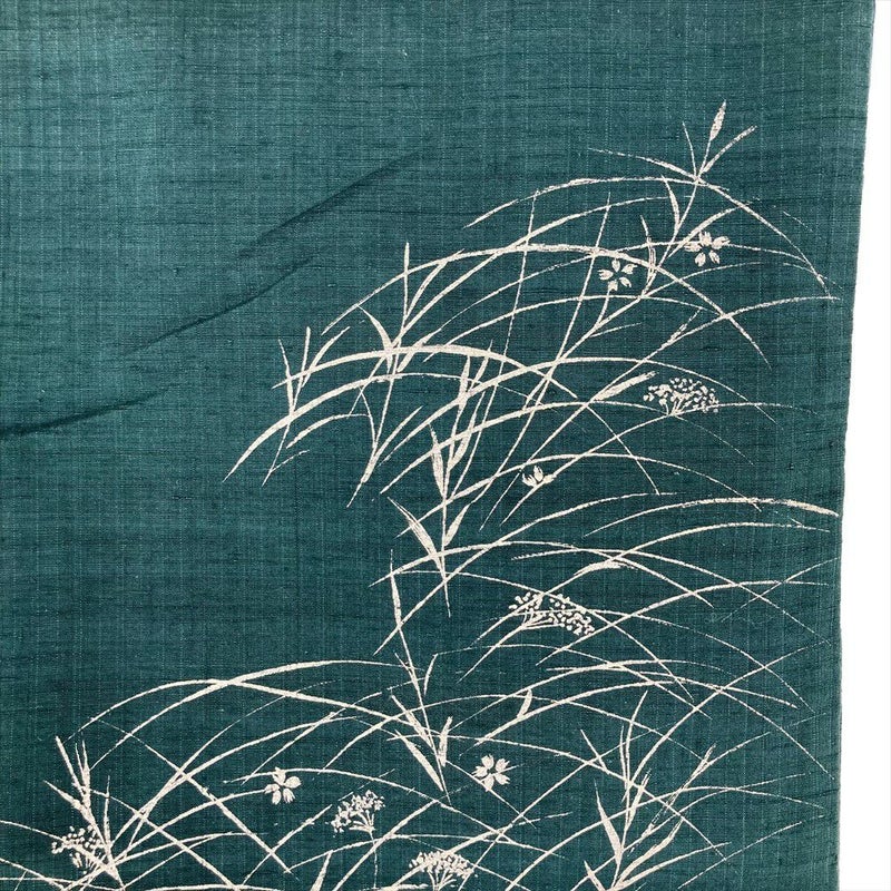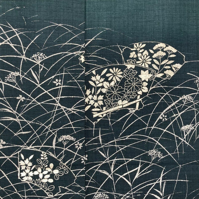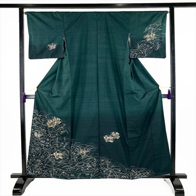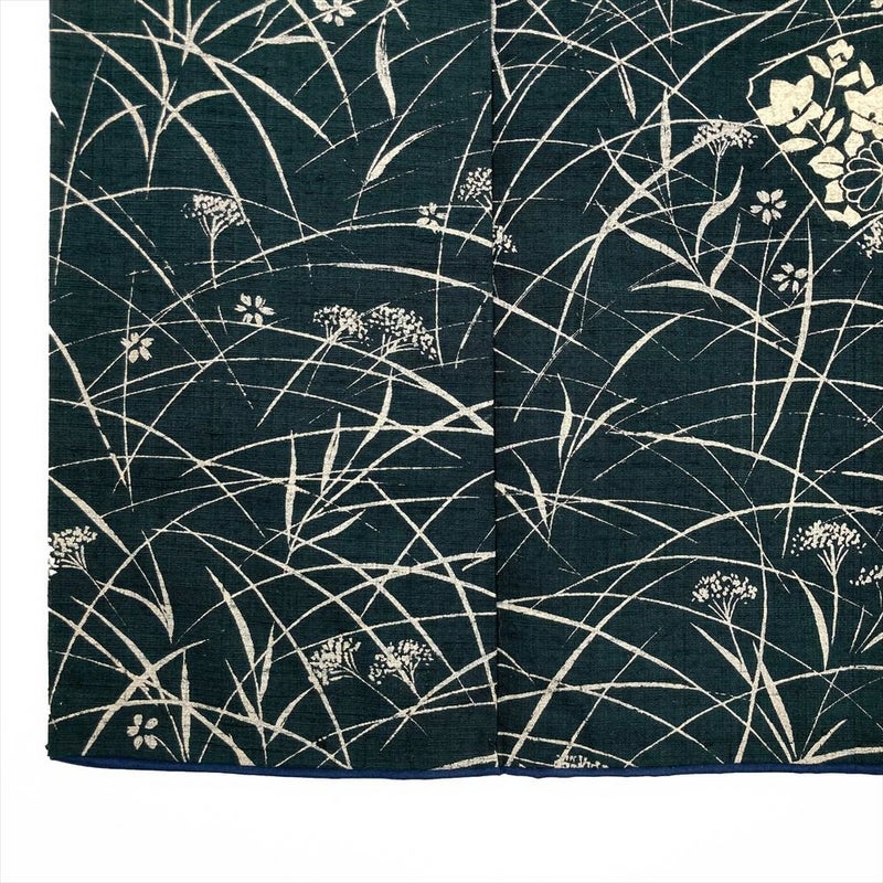 【色柄】深緑色 カジュアル 紬地 銀彩 秋の草花