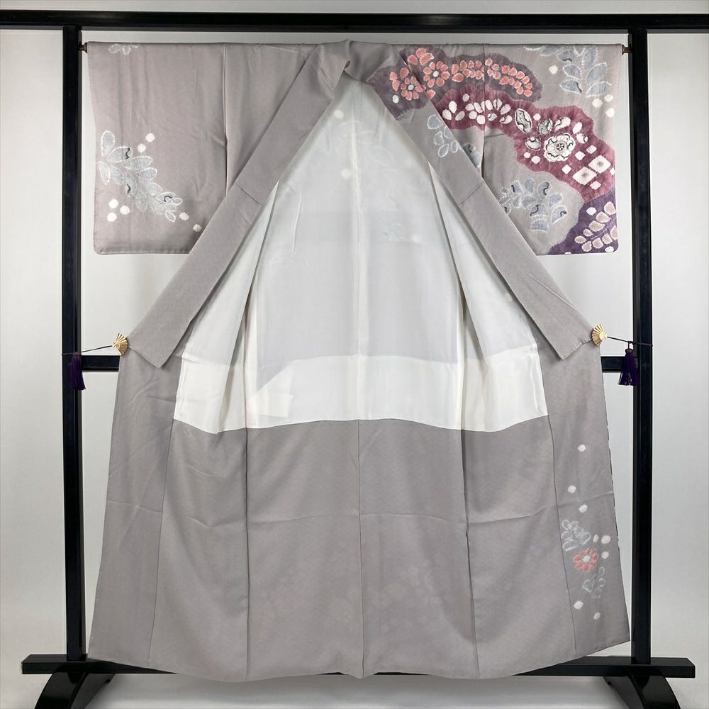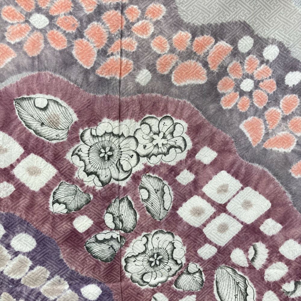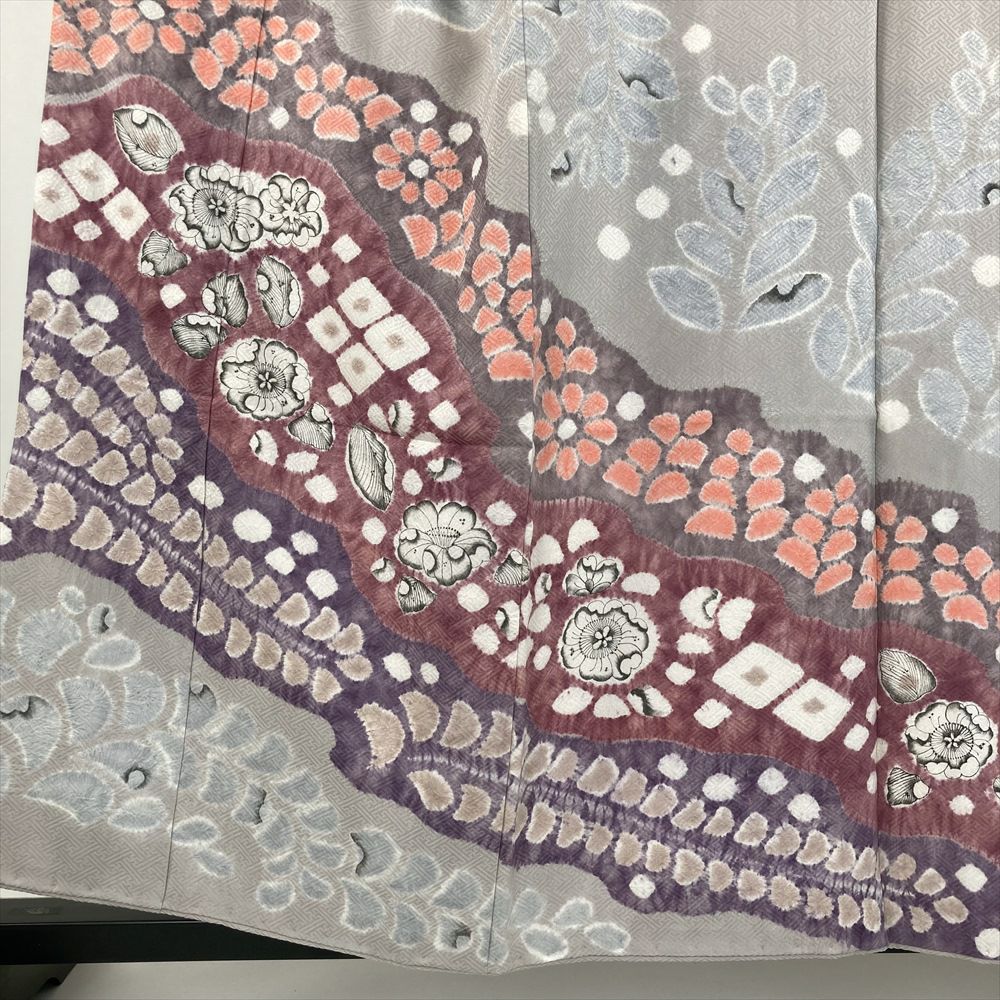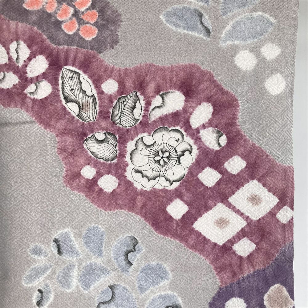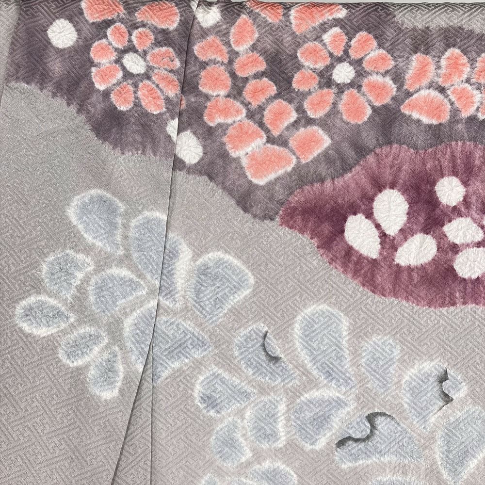 【色柄】グレー 薄灰紫色 セミフォーマル 地紋織り 染め 絞り 辻が花