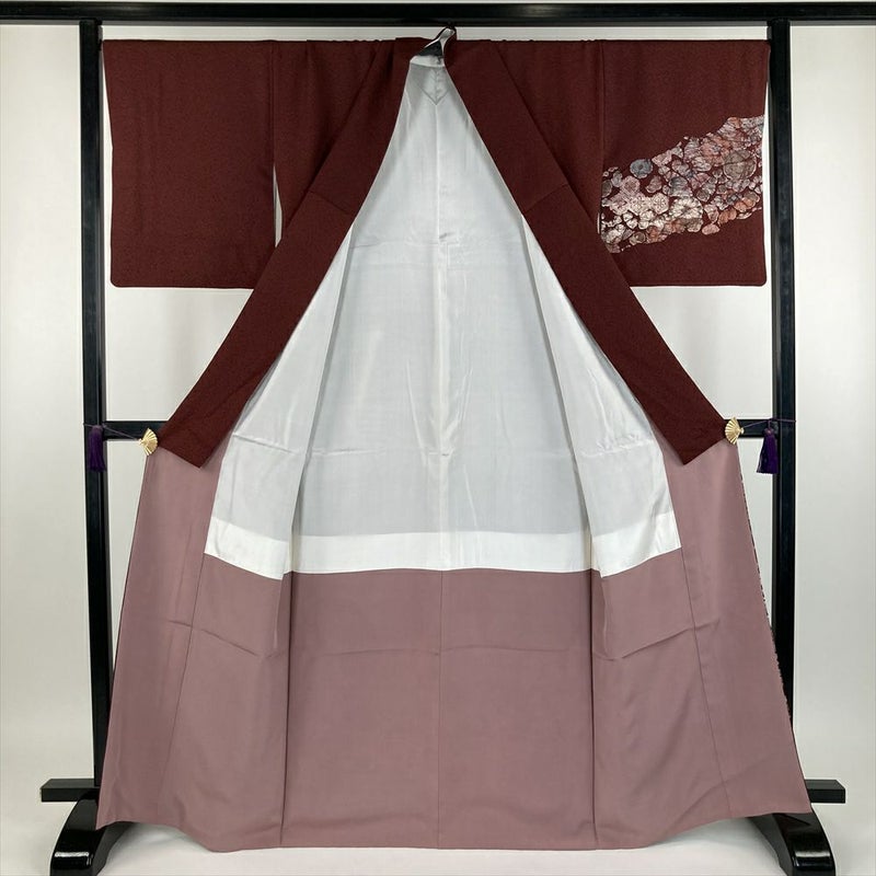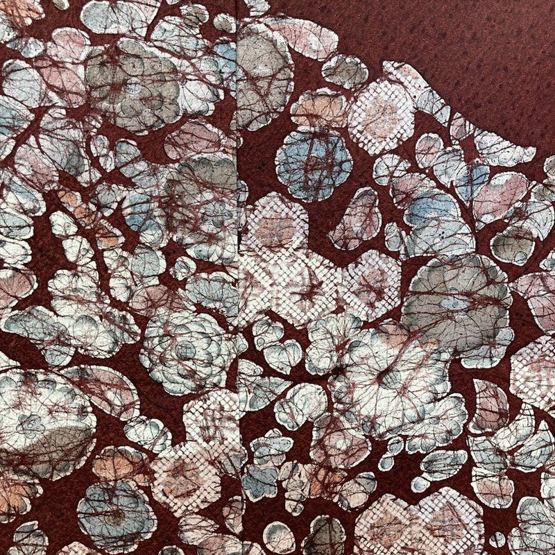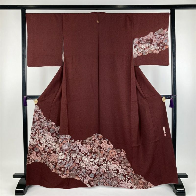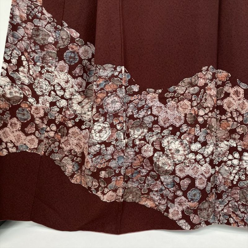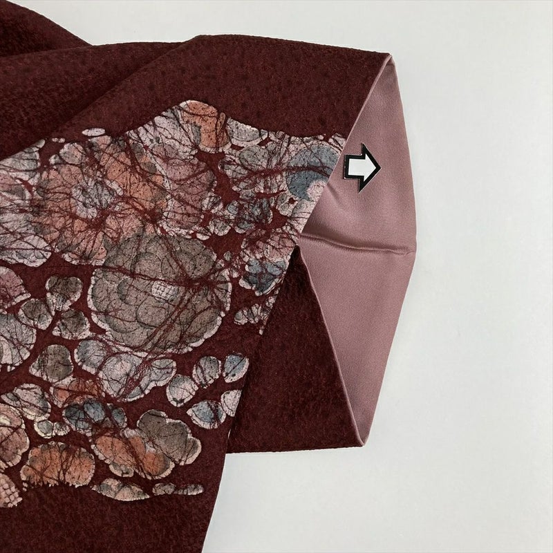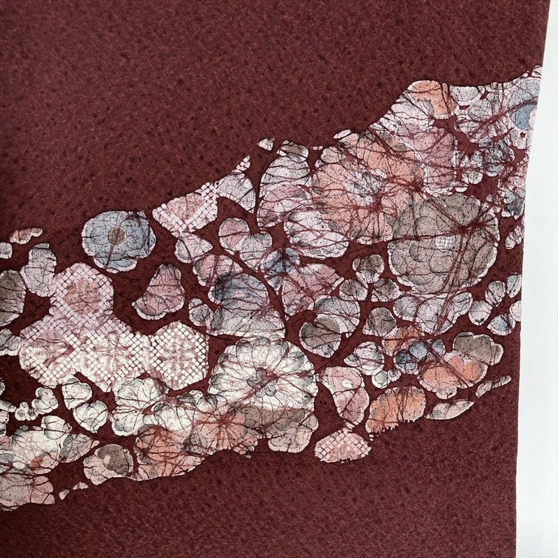 【色柄】臙脂色 セミフォーマル 地紋織り 染め  辻が花
