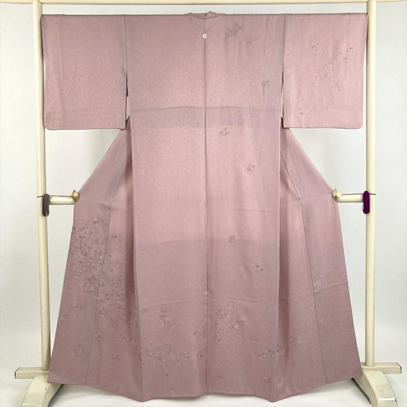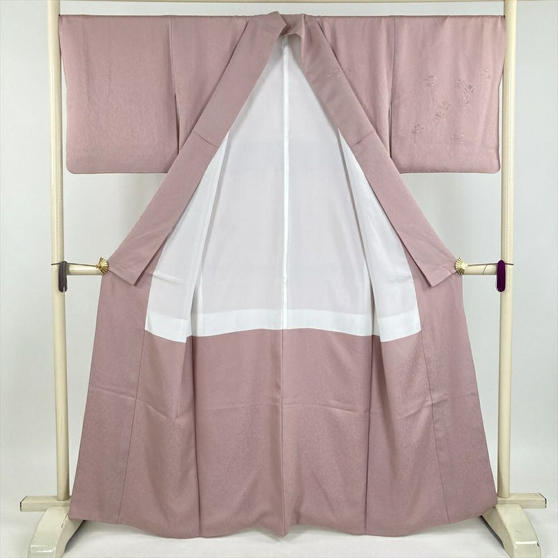 (中古) 訪問着 ピンク セミフォーマル 地紋織り 刺繍 銀糸 花の丸 袷 絹 【身丈】157cm【裄丈】68cm