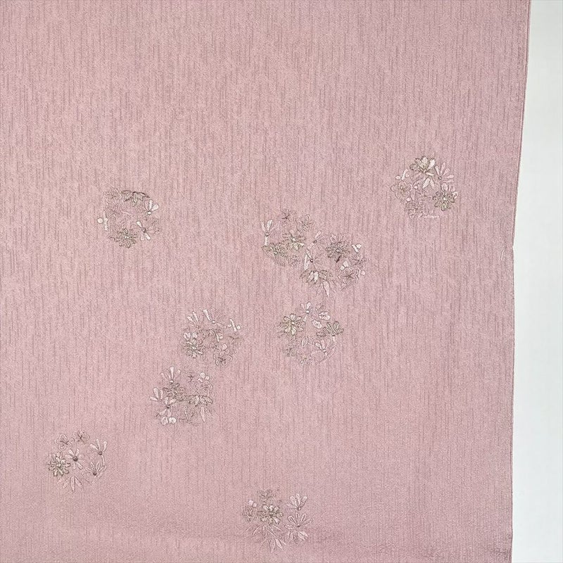 【色柄】ピンク セミフォーマル 地紋織り 刺繍 銀糸 花の丸