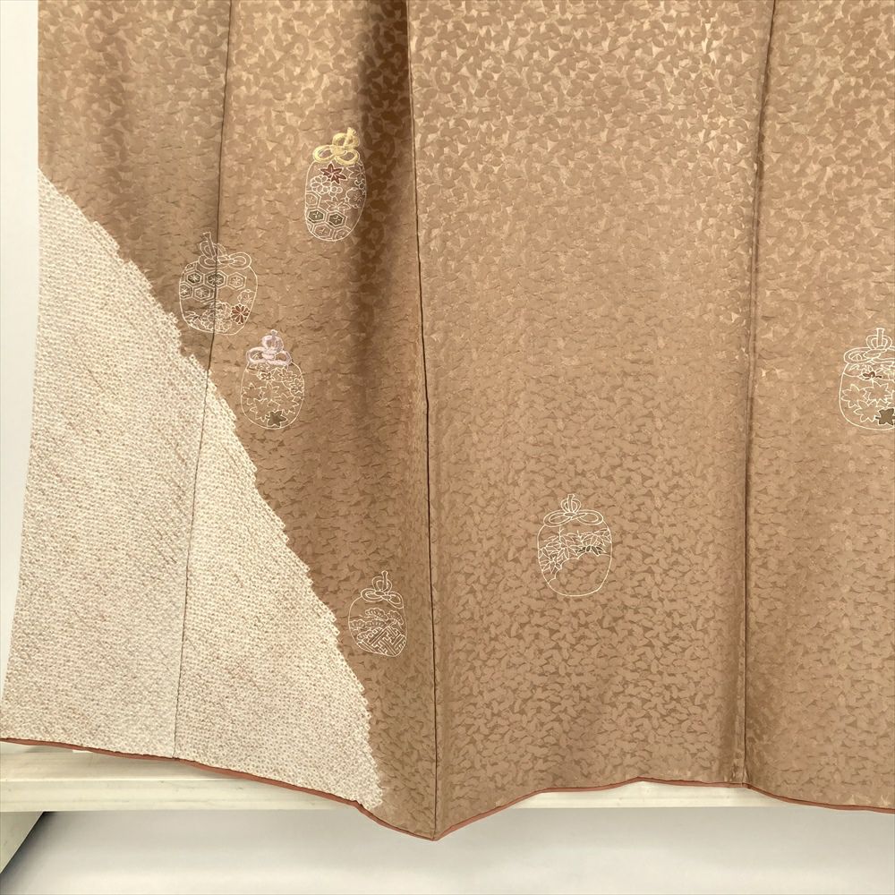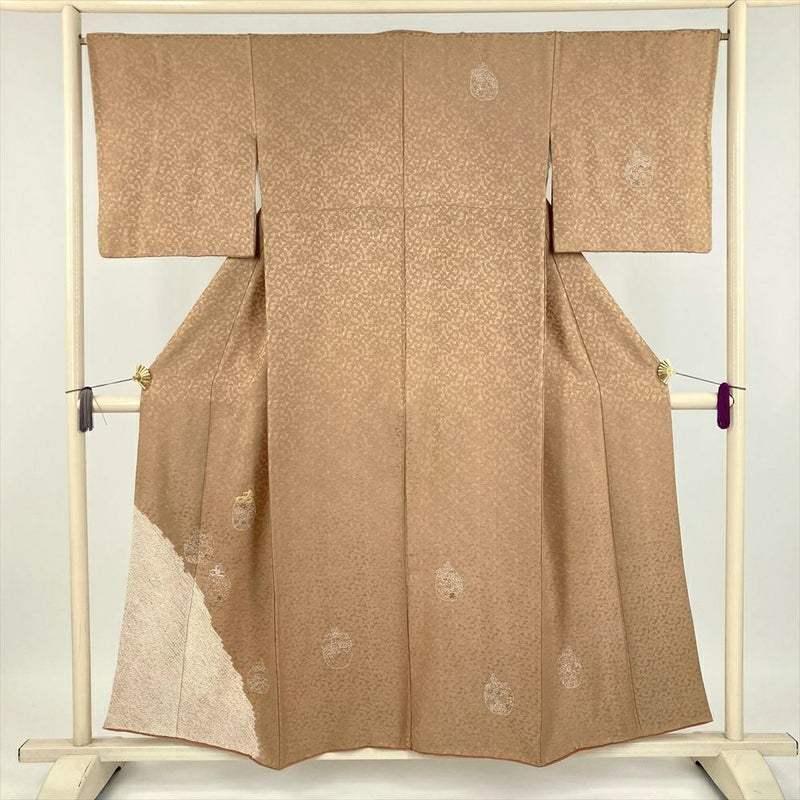 【色柄】金茶色 セミフォーマル 地紋織り 染め 絞り 刺繍 棗