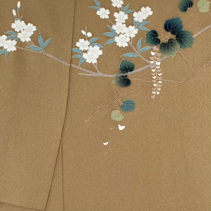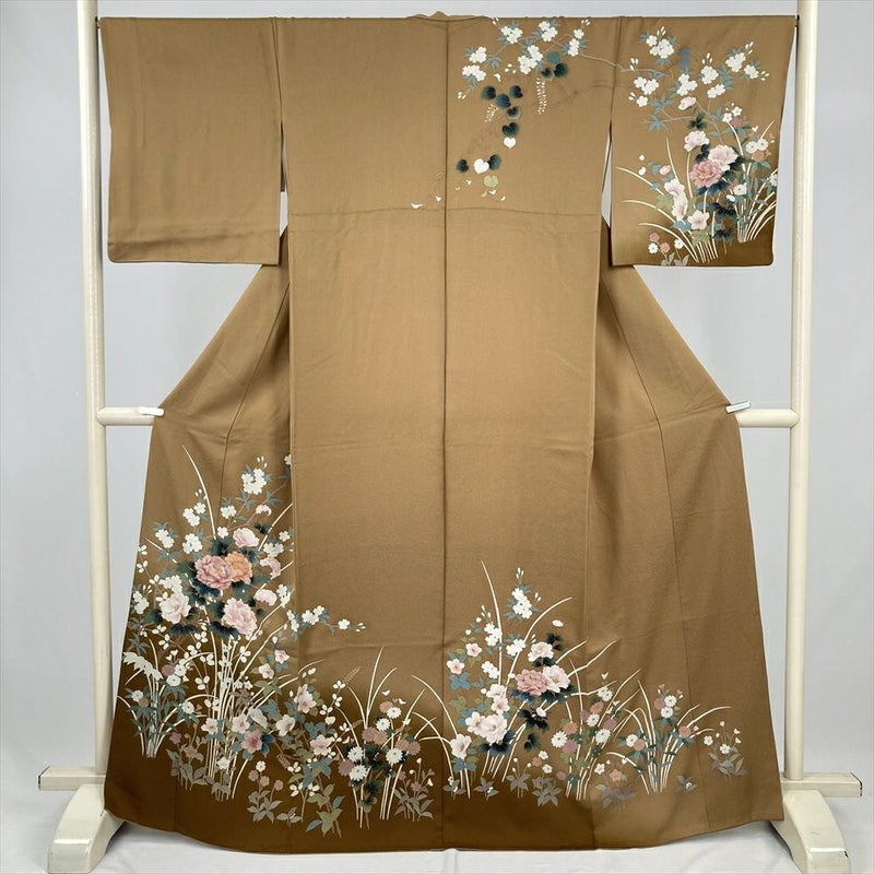 (中古) 訪問着 薄茶 セミフォーマル 四季花 袷 絹【身丈】163cm【裄丈】67.5cm