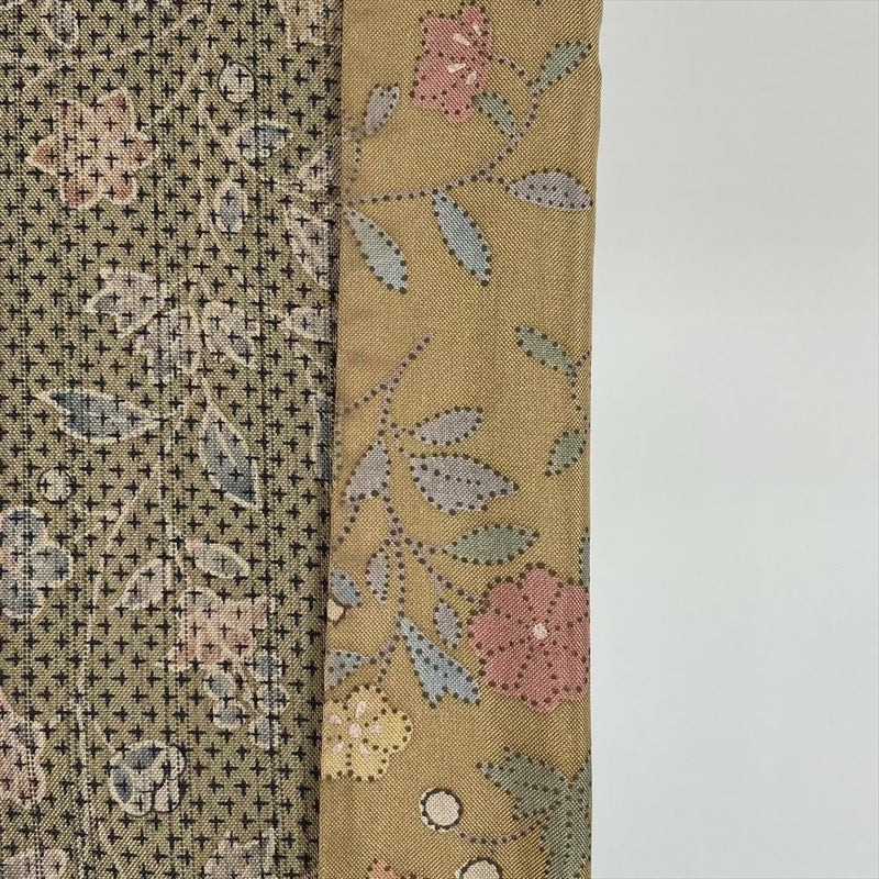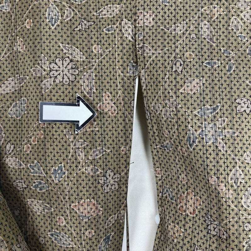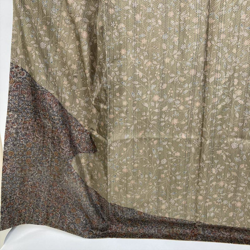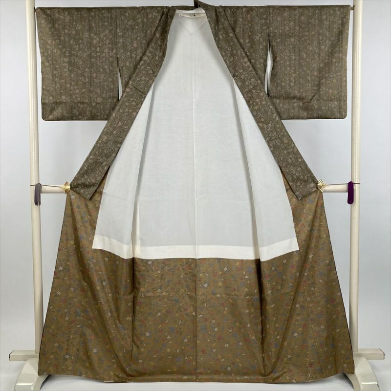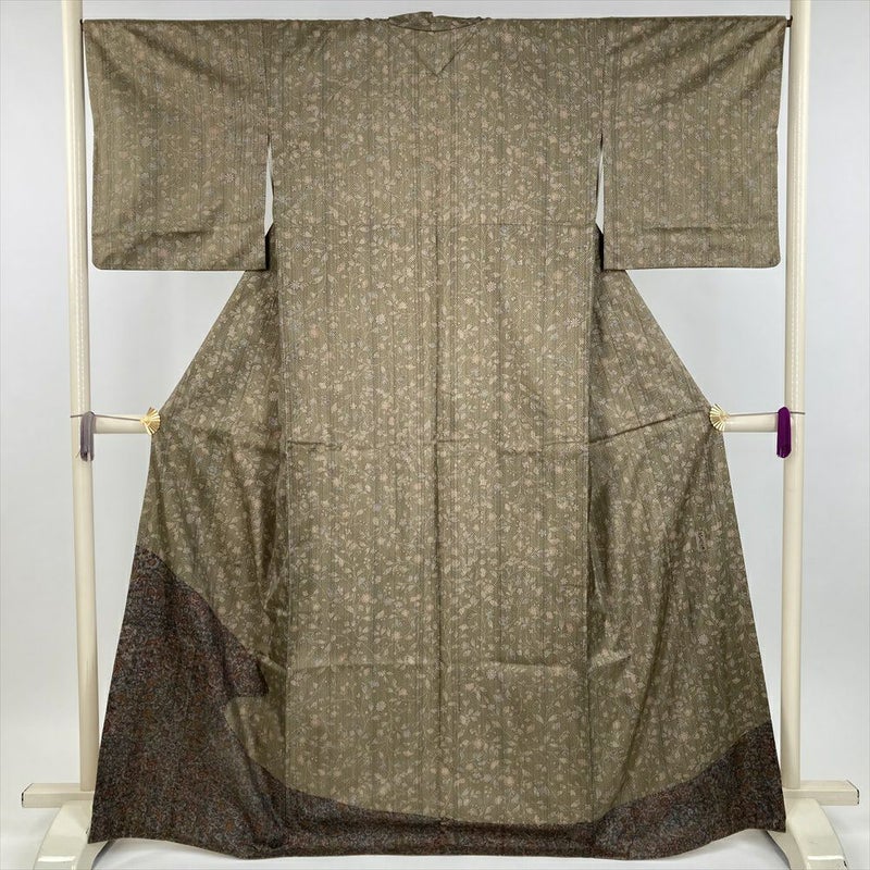 (中古) 訪問着 カーキ 茶 カジュアル 更紗 袷 絹【身丈】161.5cm【裄丈】67cm