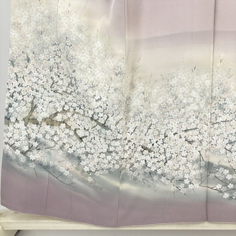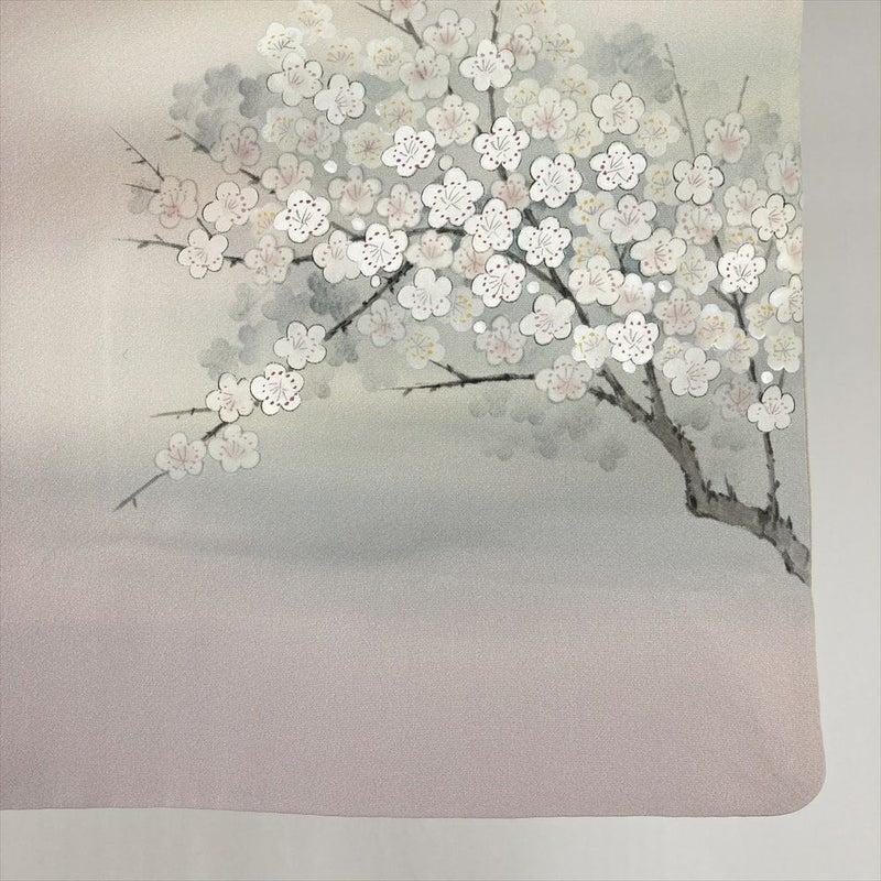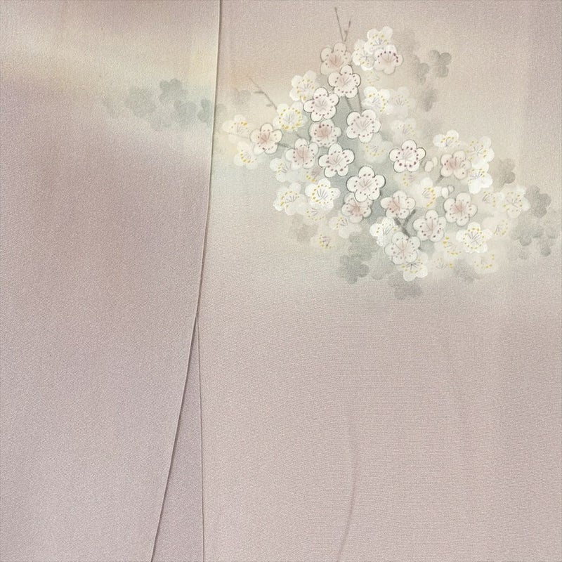 (中古) 訪問着 薄灰桜 セミフォーマル 白梅 袷 絹 【身丈】149cm【裄丈】63cm