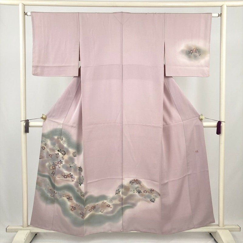 (中古) 訪問着 ピンク セミフォーマル 道長取り 菊尽くし 袷 絹 【身丈】152cm【裄丈】63cm