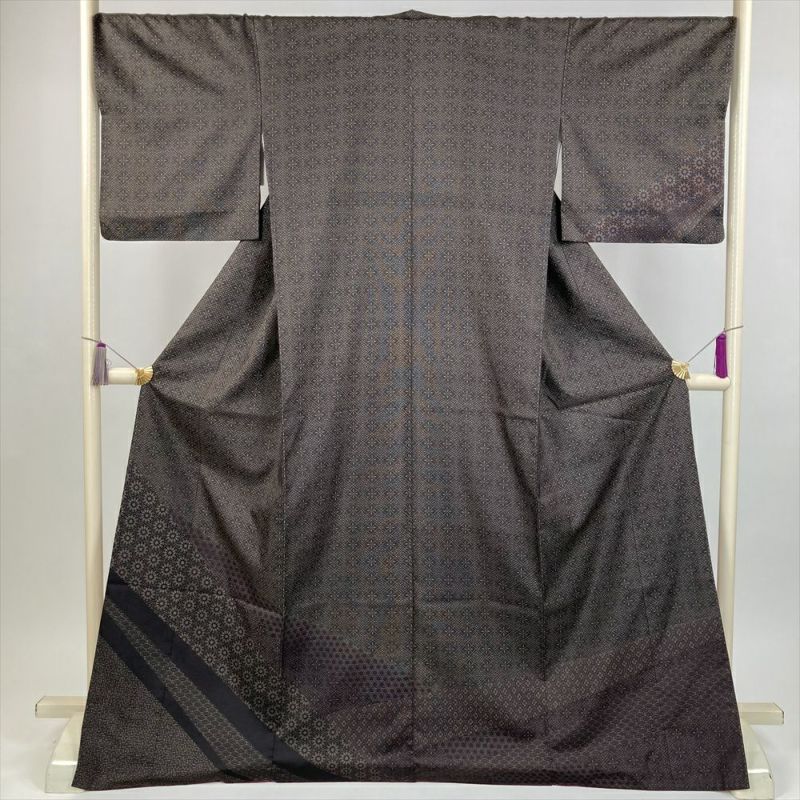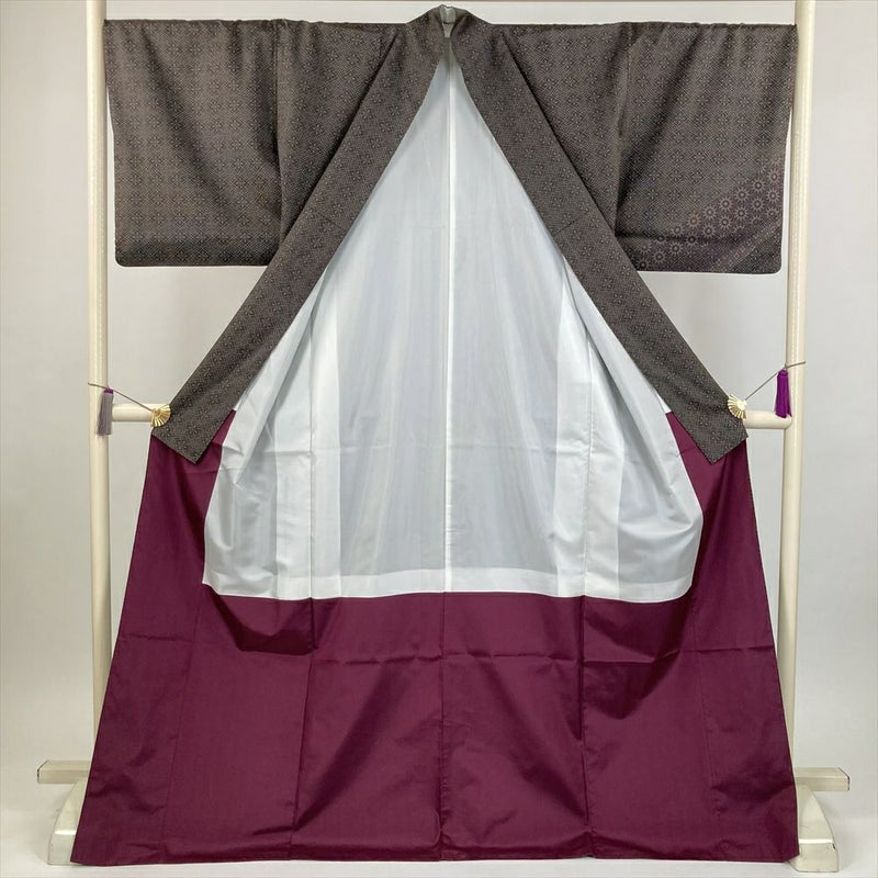 (中古) 訪問着 焦げ茶色 カジュアル セミフォーマル 吉祥文 袷 絹 【身丈】167cm【裄丈】69cm