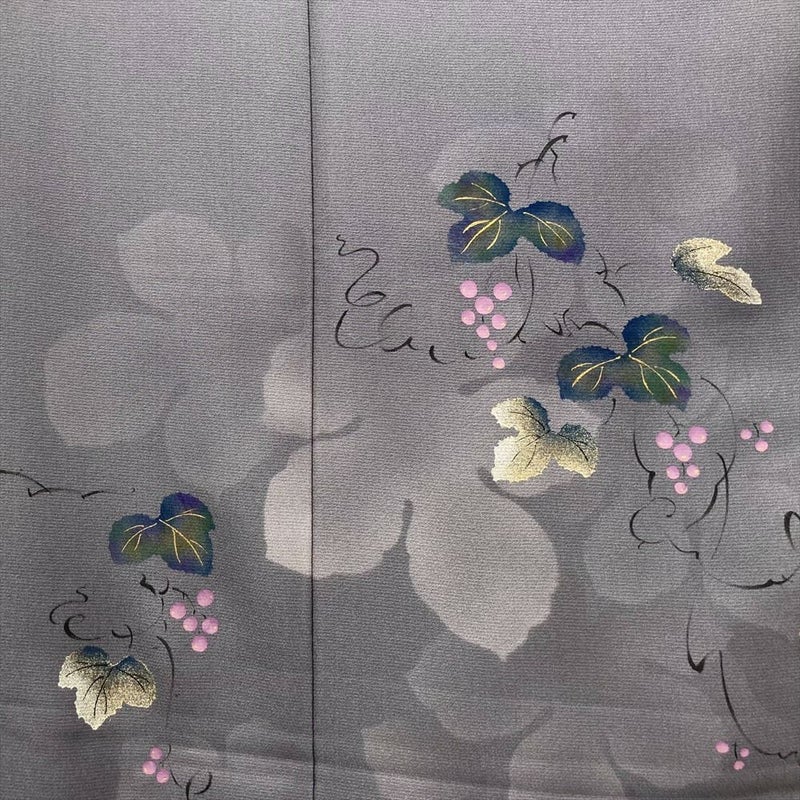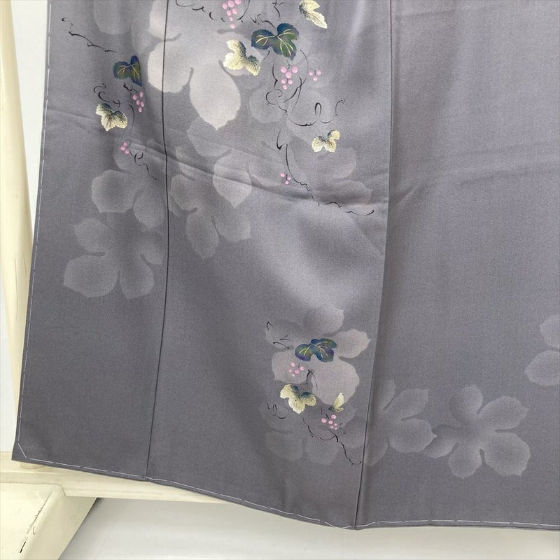 (中古) 訪問着 グレー セミフォーマル 葡萄 袷 絹【身丈】151.5cm【裄丈】66.5cm