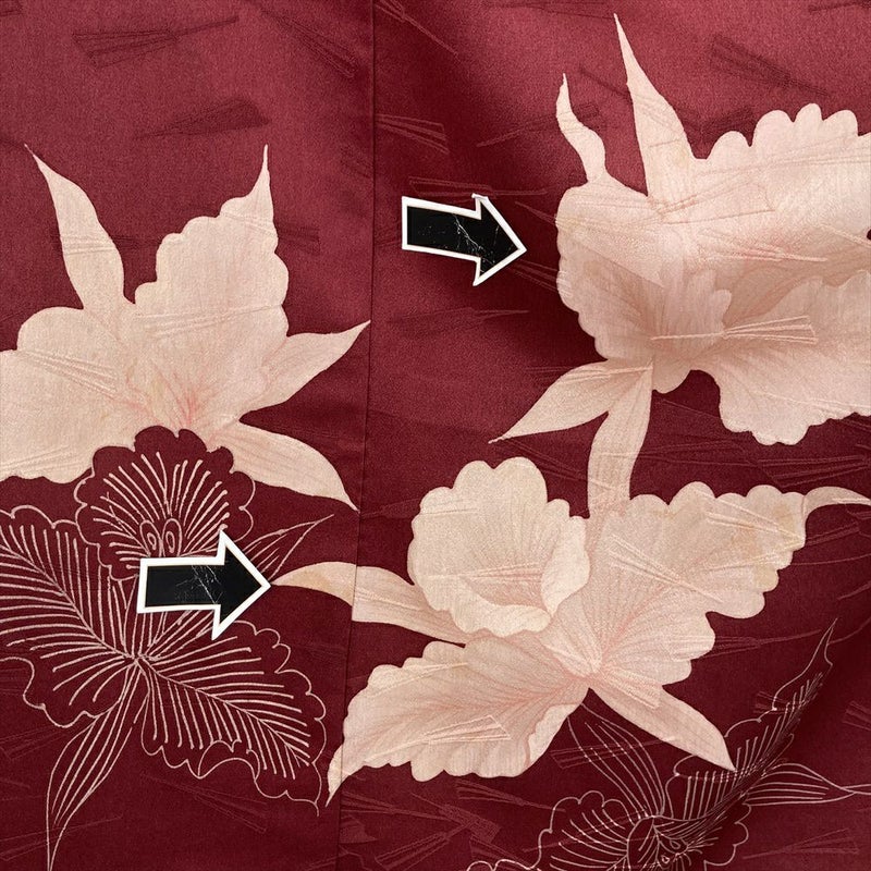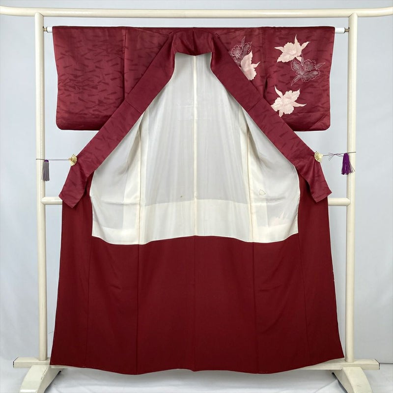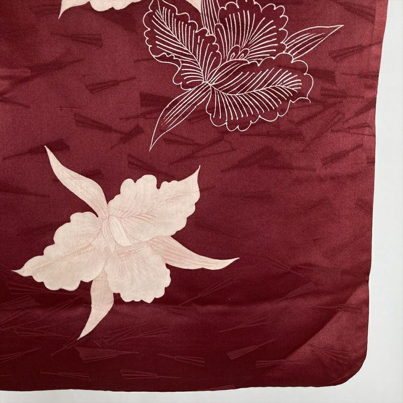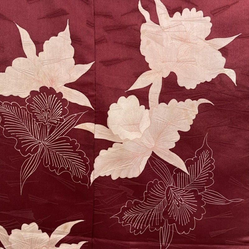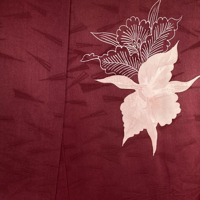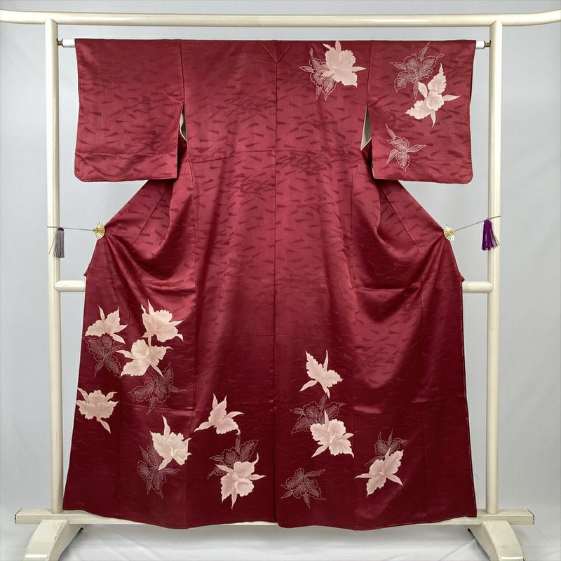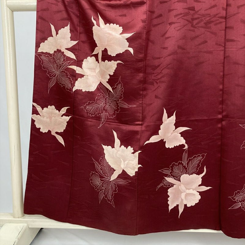 しっとりとした臙脂色の地に、蘭の花が品よく描かれたヴィンテージの付け下げです。