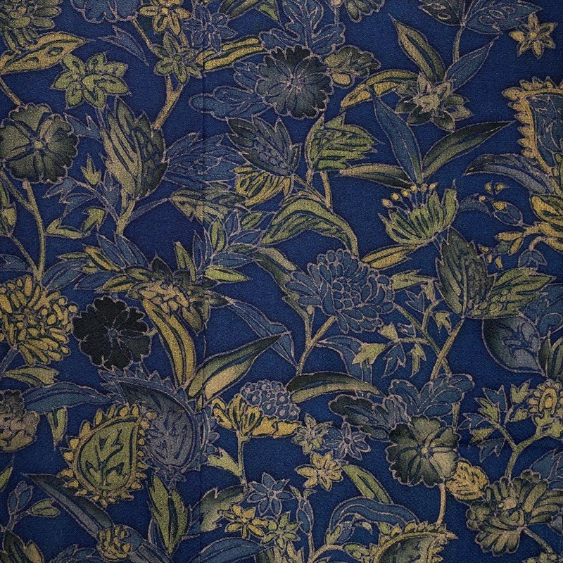 <div class=紺地に咲き誇る草花文様