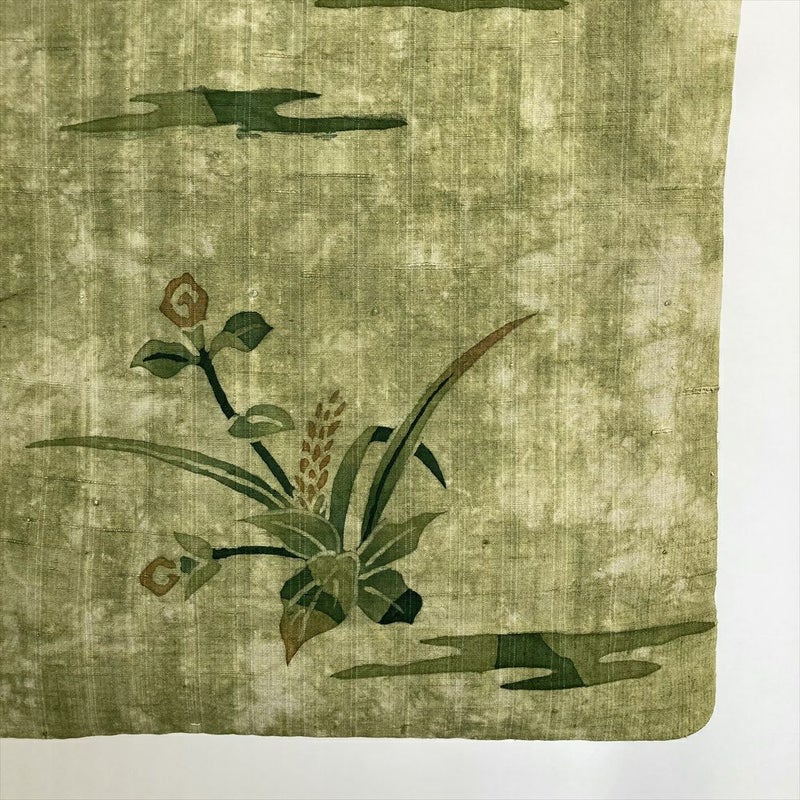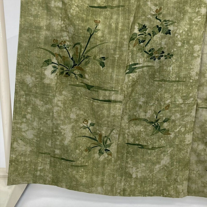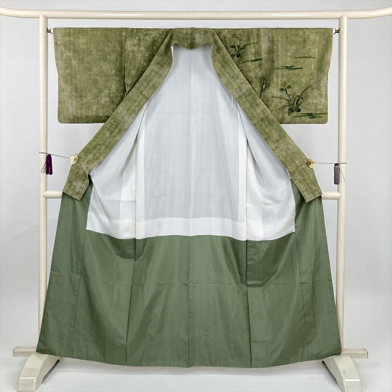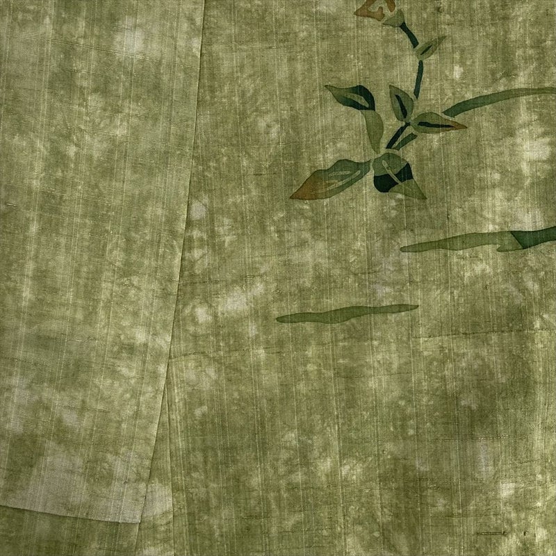 (中古) 訪問着 緑 カジュアル 草花 袷 絹【身丈】157.5cm【裄丈】65.5cm