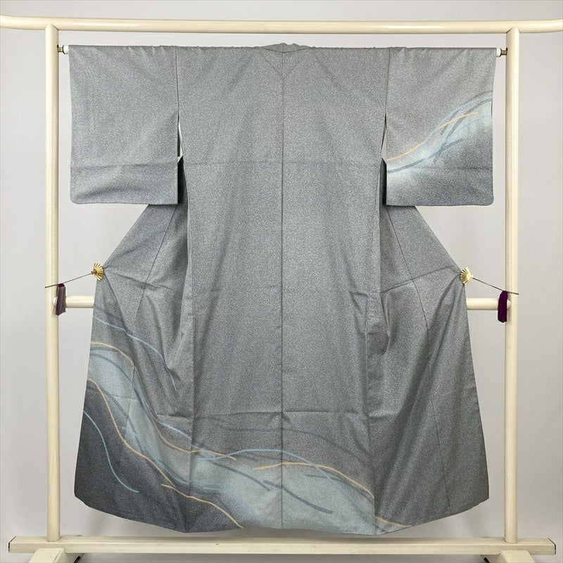 (中古) 訪問着 ブルーグレー カジュアル たたき 抽象柄 袷 絹 大島紬【身丈】142.5cm【裄丈】65cm