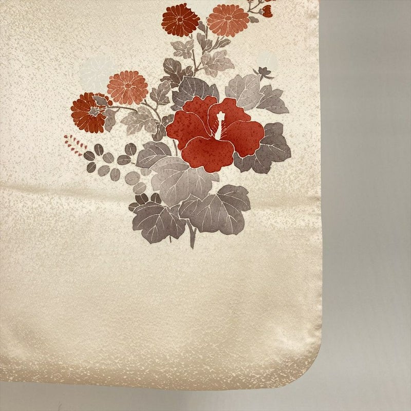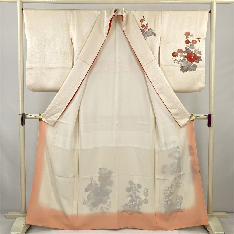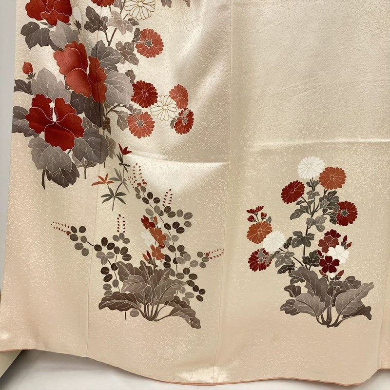 (中古) 訪問着 薄卵色 黄色 クリーム セミフォーマル 四季花 流水 袷 絹【身丈】159.5cm【裄丈】67cm
