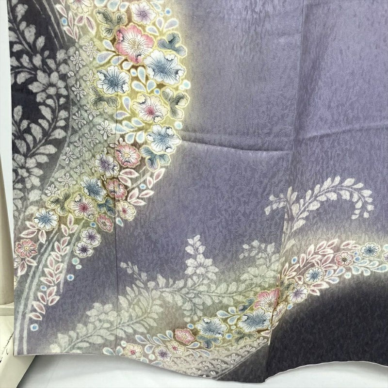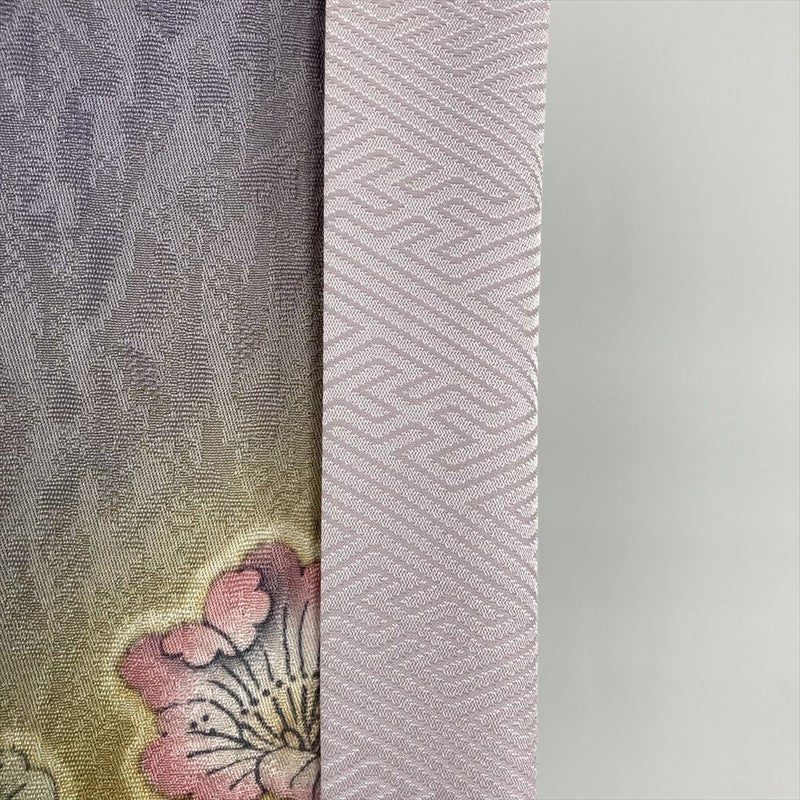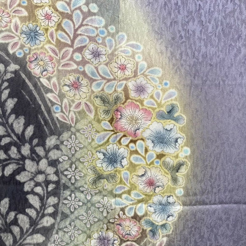 しっとりとした風合いの縮緬生地に、繊細で華やかな染めが施され、上品な華やかさを演出します。
