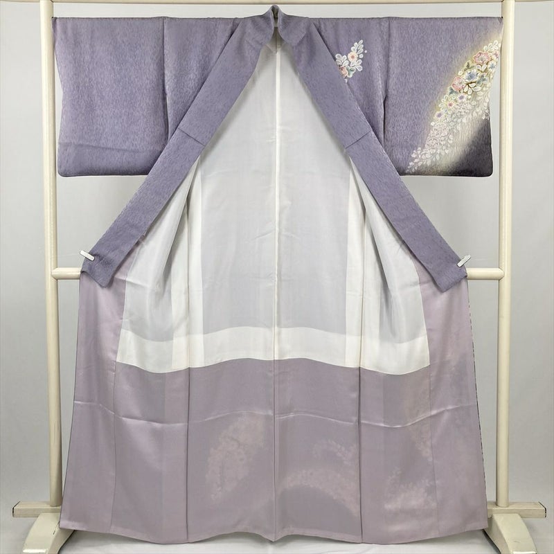(中古) 訪問着 藤色 紫 セミフォーマル 辻が花 袷 絹【身丈】157cm【裄丈】67.5cm