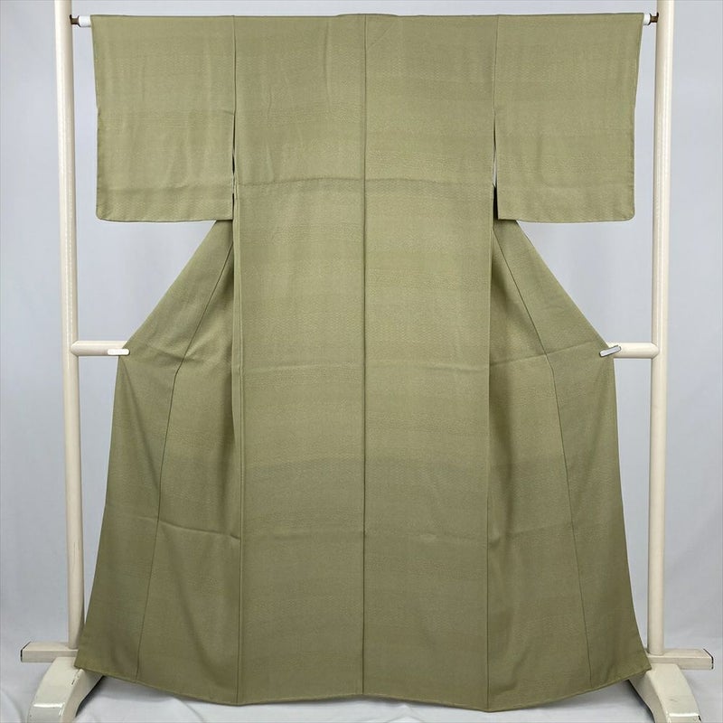 (中古) 訪問着 黄緑 カジュアル セミフォーマル 伊勢型 袷 絹【身丈】158.5cm【裄丈】64cm