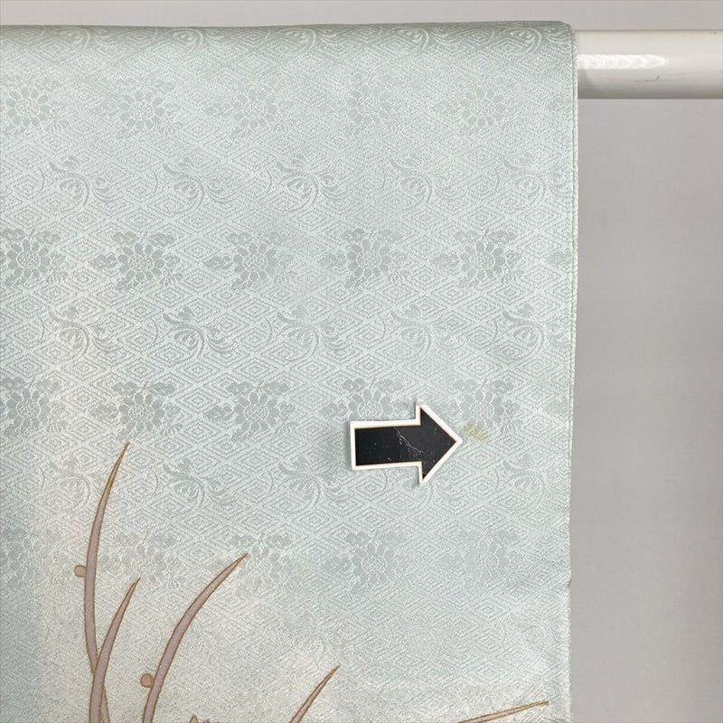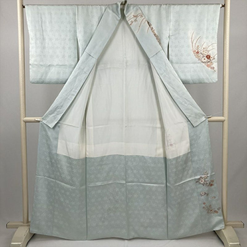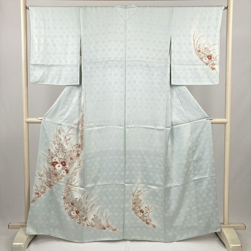 (中古) 訪問着 水色 セミフォーマル 草花 金彩 地紋織り 袷 絹【身丈】157.5cm【裄丈】66.5cm