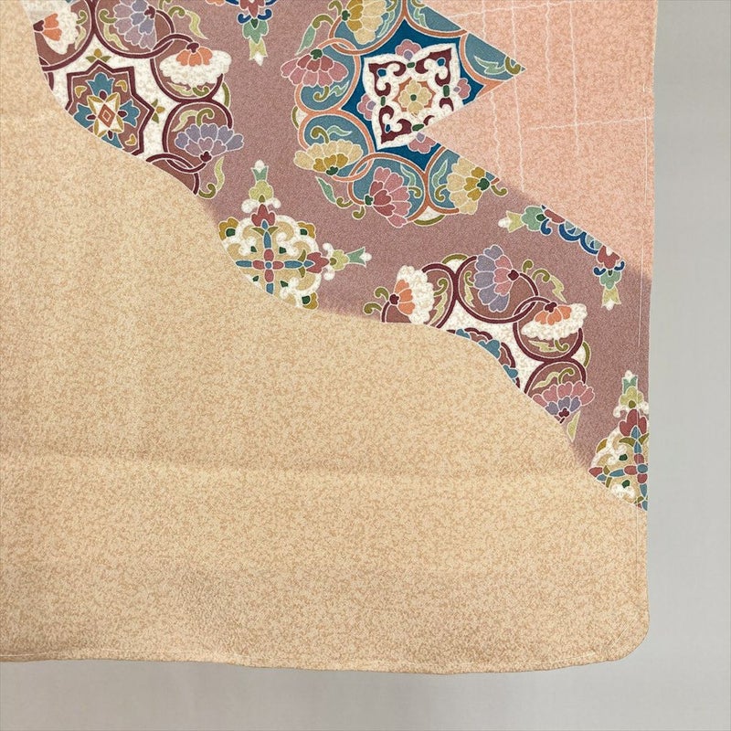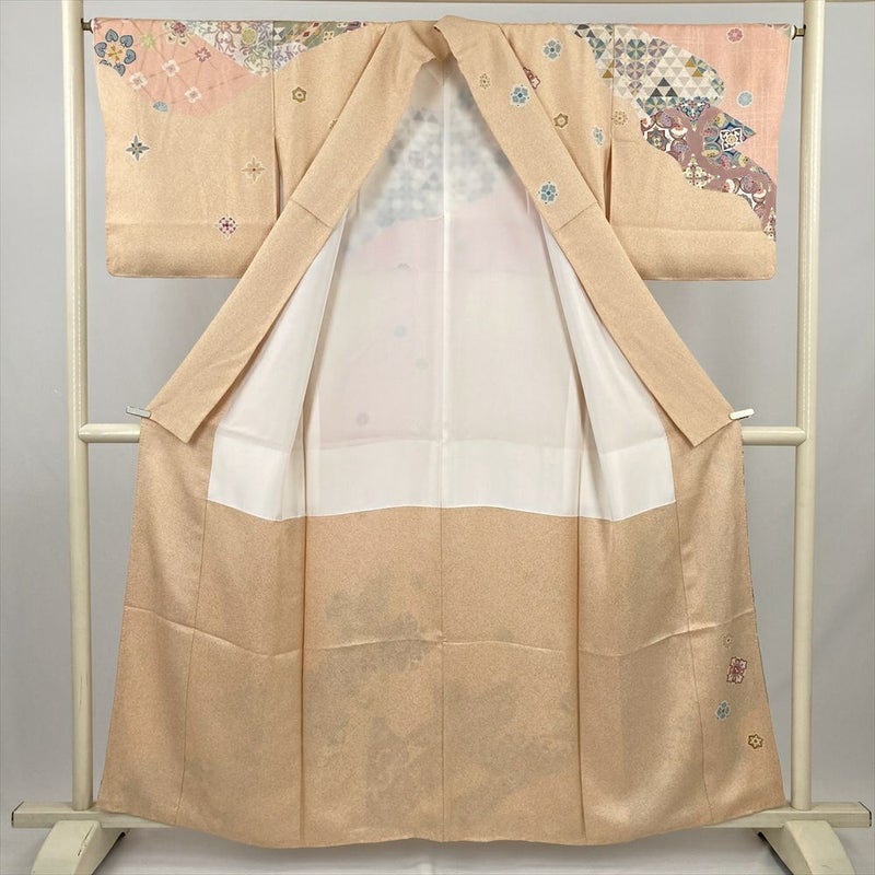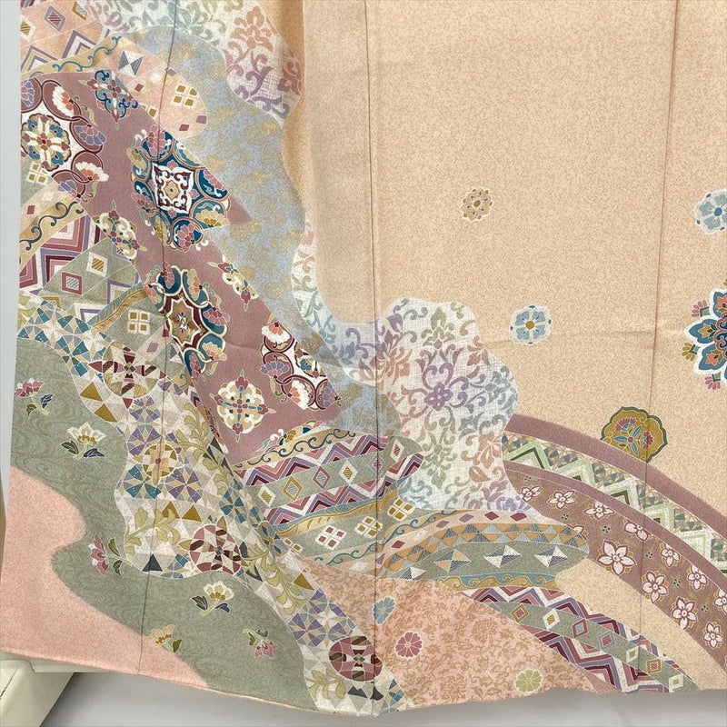 (中古) 訪問着 ペールオレンジ セミフォーマル 華文 慶長 袷 絹【身丈】153cm【裄丈】66cm