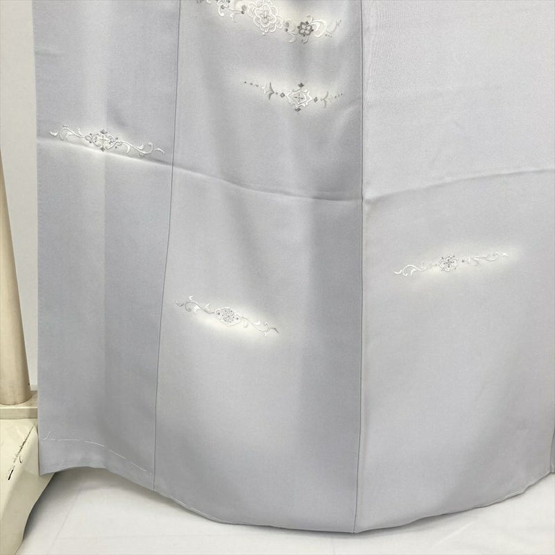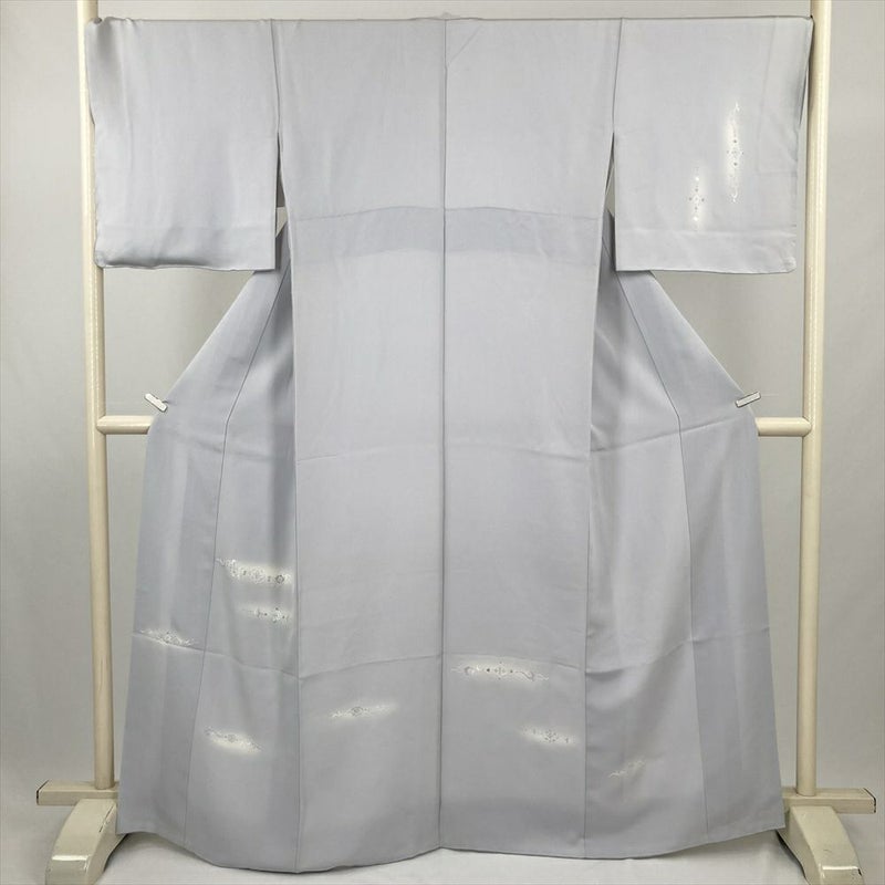 (中古) 訪問着 アイスグレー セミフォーマル 刺繍 袷 絹【身丈】160cm【裄丈】69.5cm