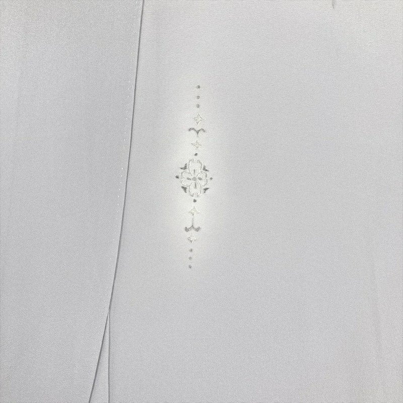 銀糸のアクセントが光を受けて優雅に輝き、エレガントな雰囲気を一層引き立てます。